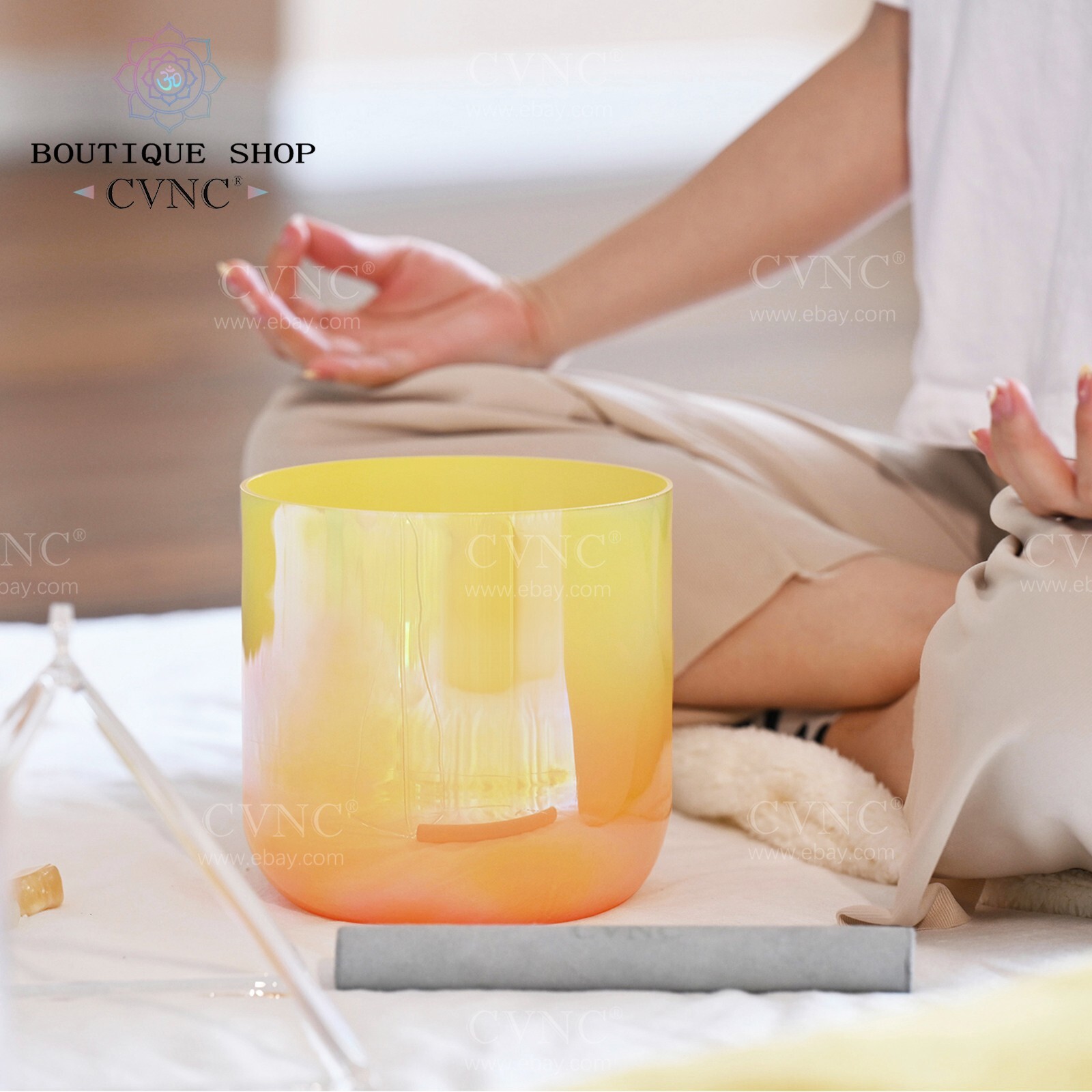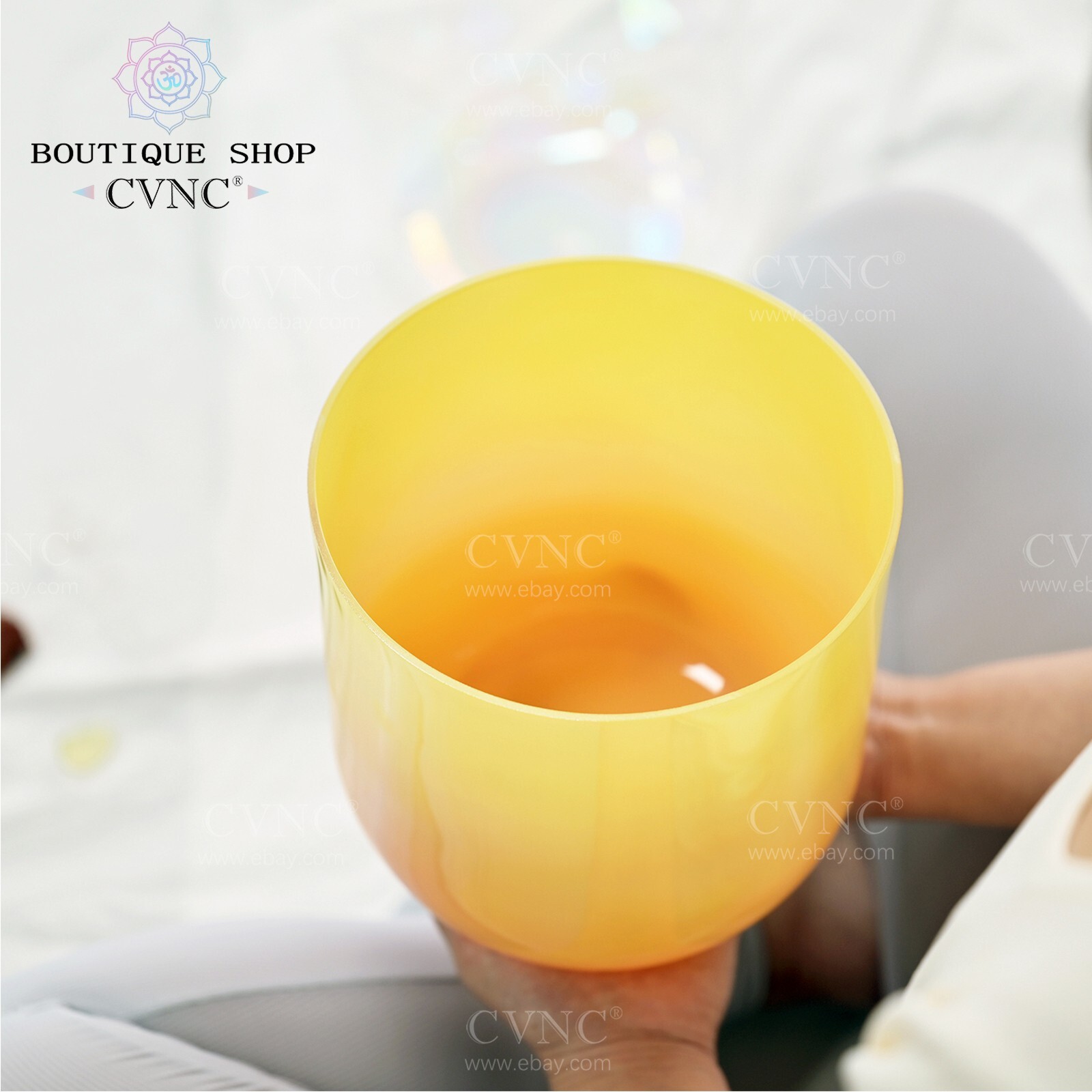 как выглядит CVNC 432HZ 6" E Solar Plexus Chakra Cosmic Clear Crystal Singing Bowl Sound Heal фото