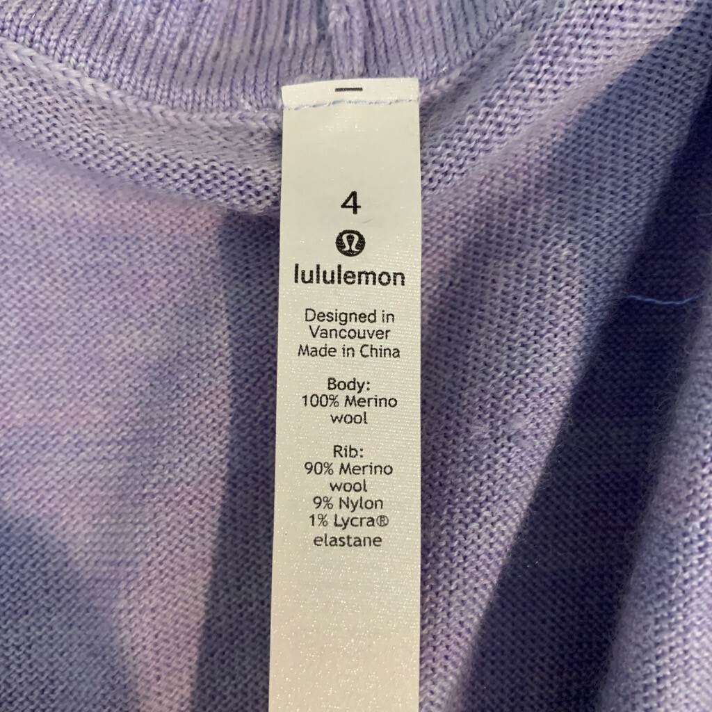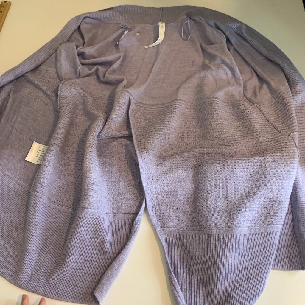 как выглядит Lululemon Cardigan Womens 4 Lavender Merino Wool Sit In Lotus Open Front READ фото