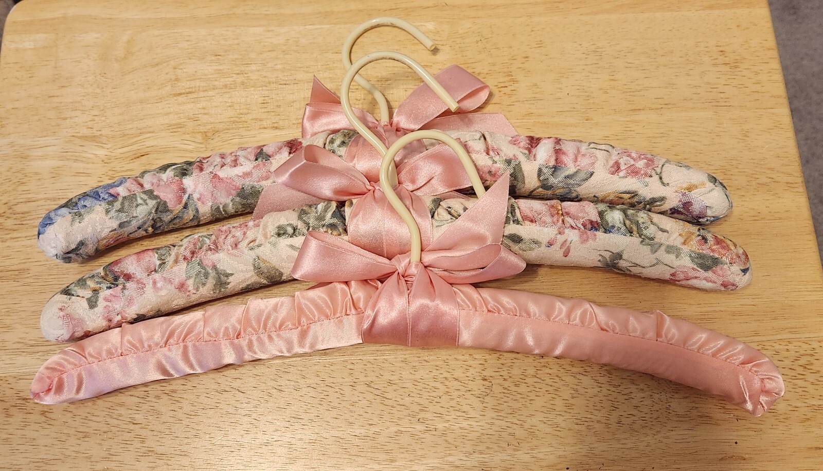 как выглядит 3 VTG Padded Satin and Cloth Clothes Hangers Lot VERY NICE фото