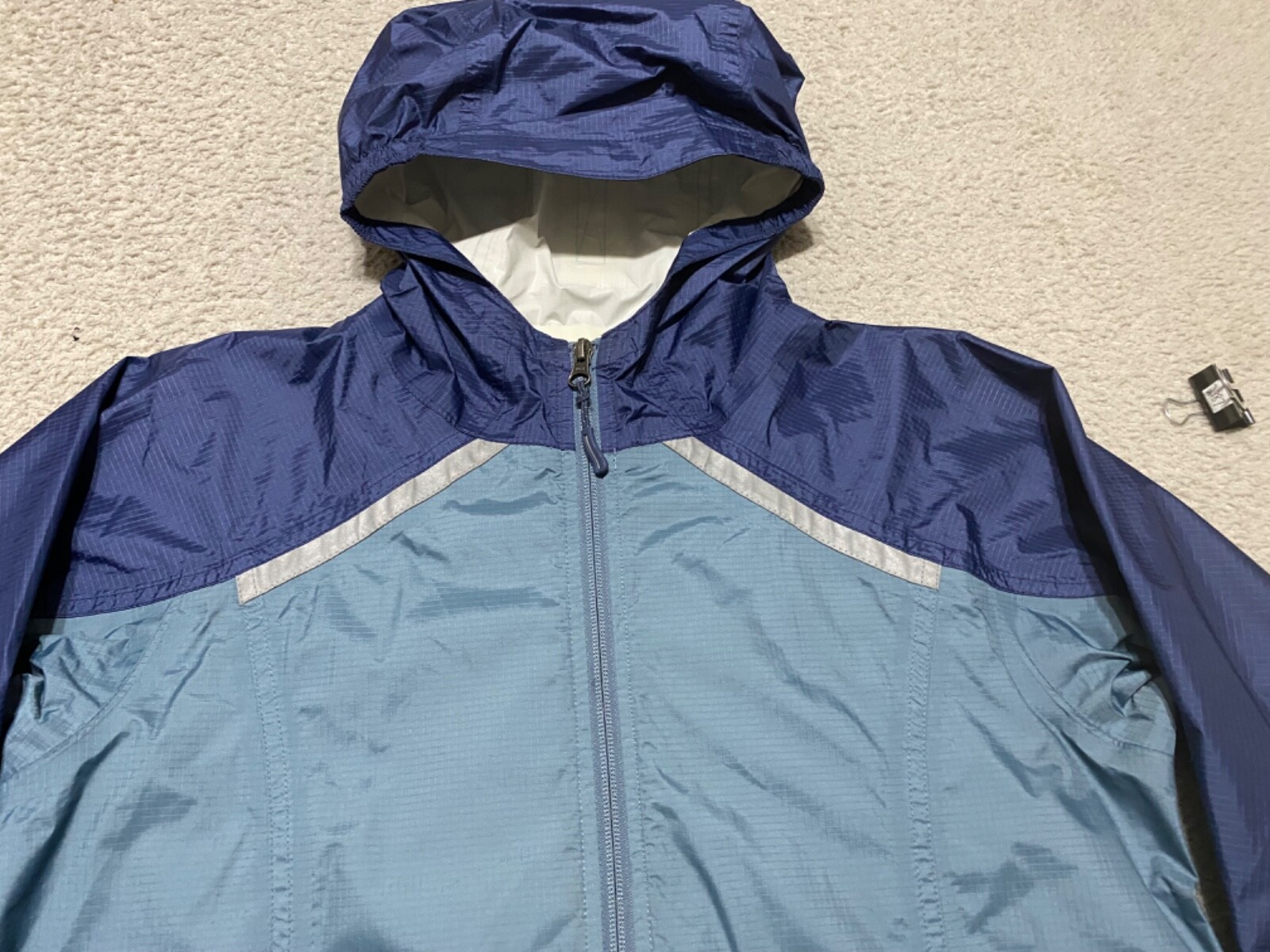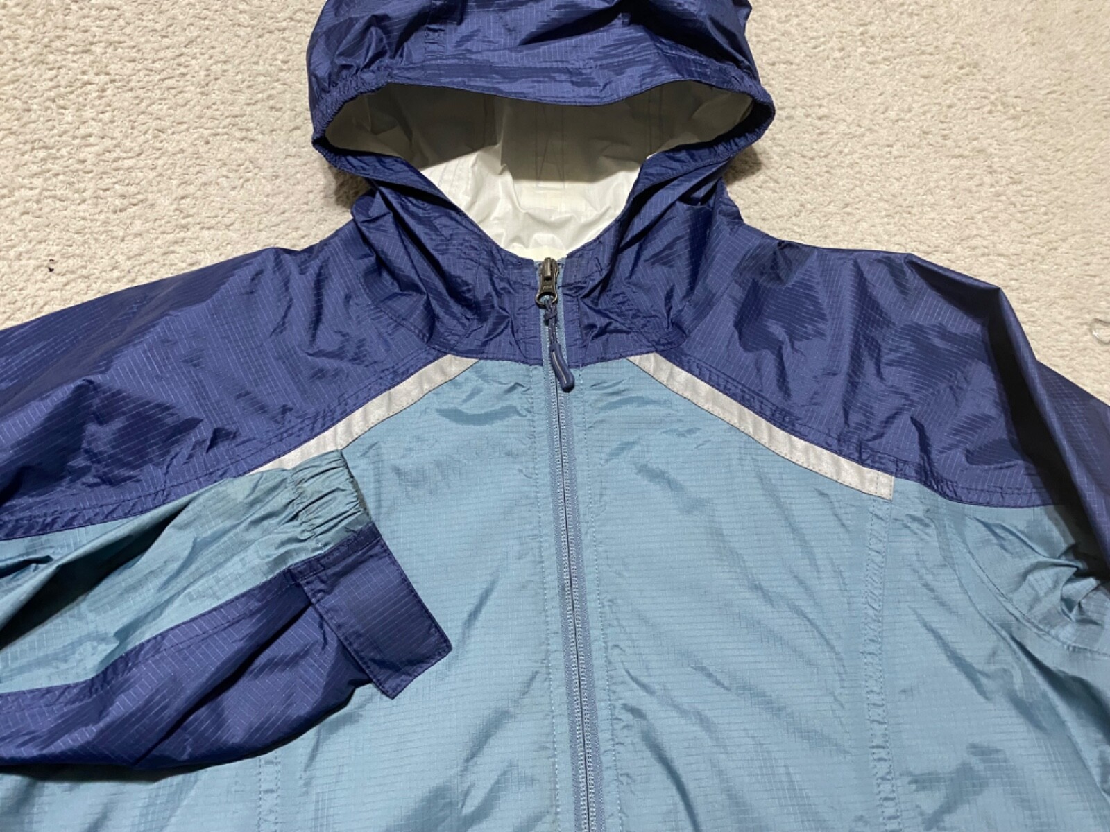 L.L. Bean Boys Large Jacket Blue Full Zip Windbreaker Rain Trail Hooded Outdoor