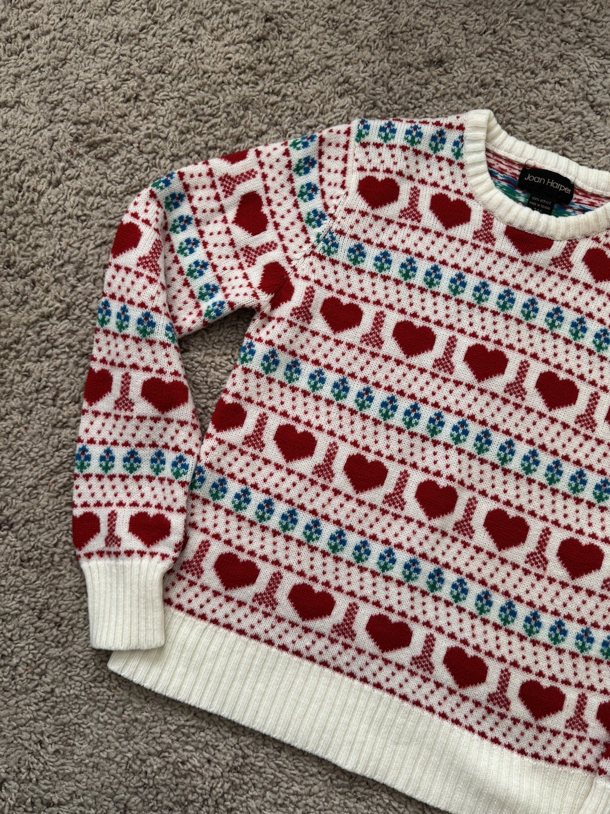 Vintage 80 s Joan Harper Sweater Red Hearts Size M Flowers