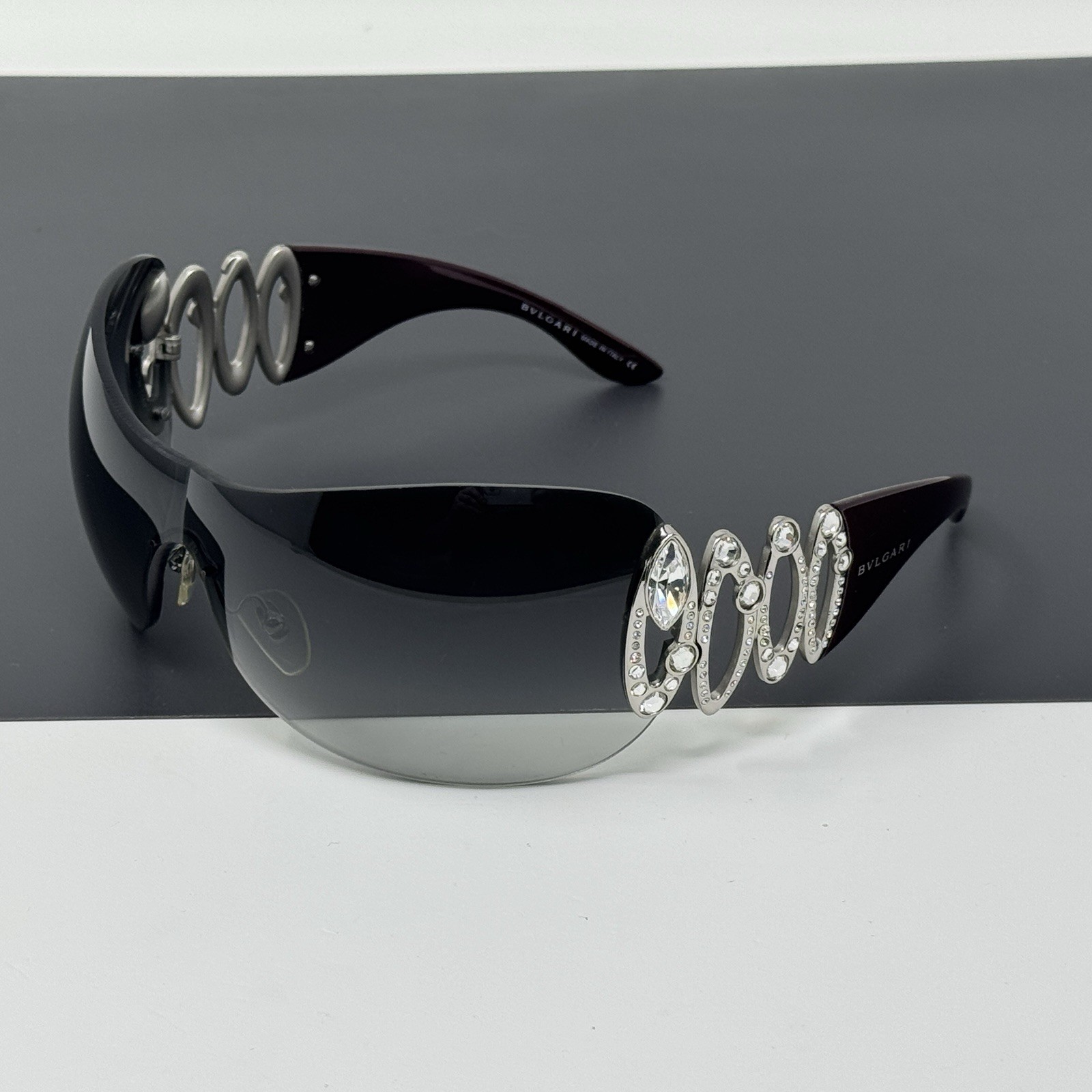Bvlgari Burgundy Silver Heavy Rhinestone Shield Sunglasses 6017-B 102/8G 6017 B
