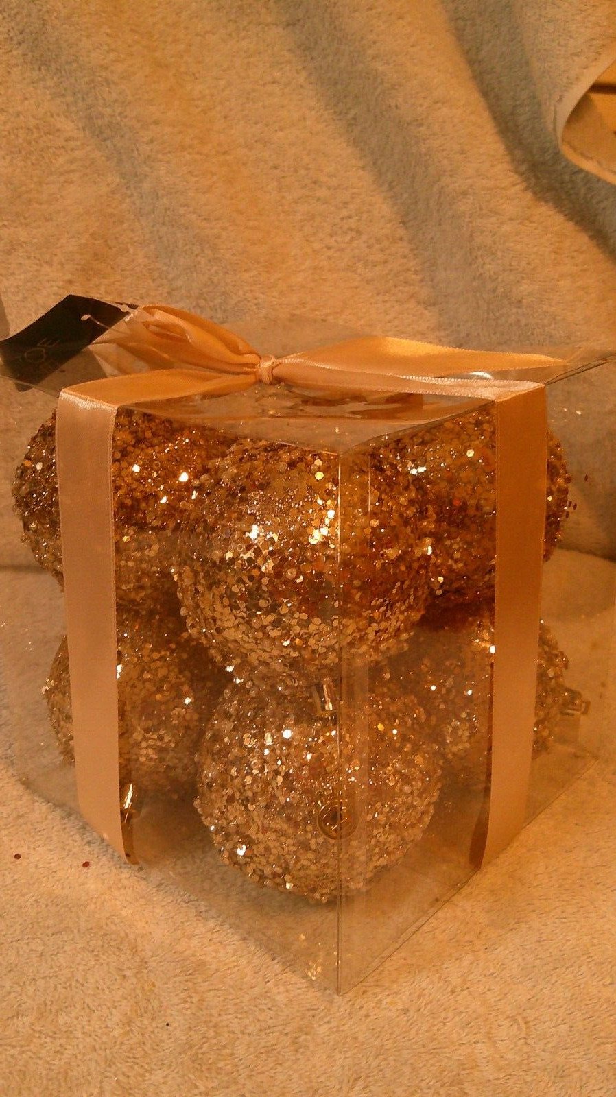 как выглядит Rachel Zoe Set Of 8 Champagne Glitter Shatterproof Christmas Ornaments New фото