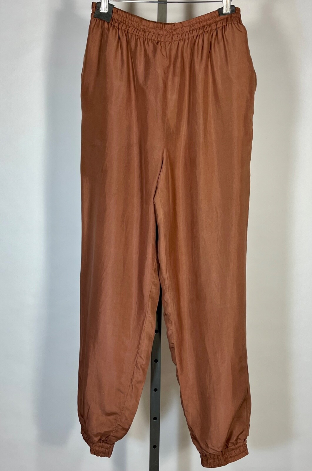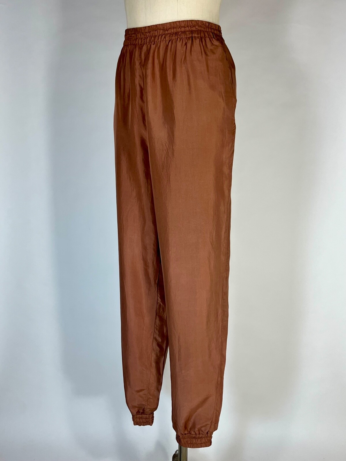 как выглядит Vintage 1990s mocha cocoa brown PURE SILK relaxed parachute harem pants sz. M/L фото