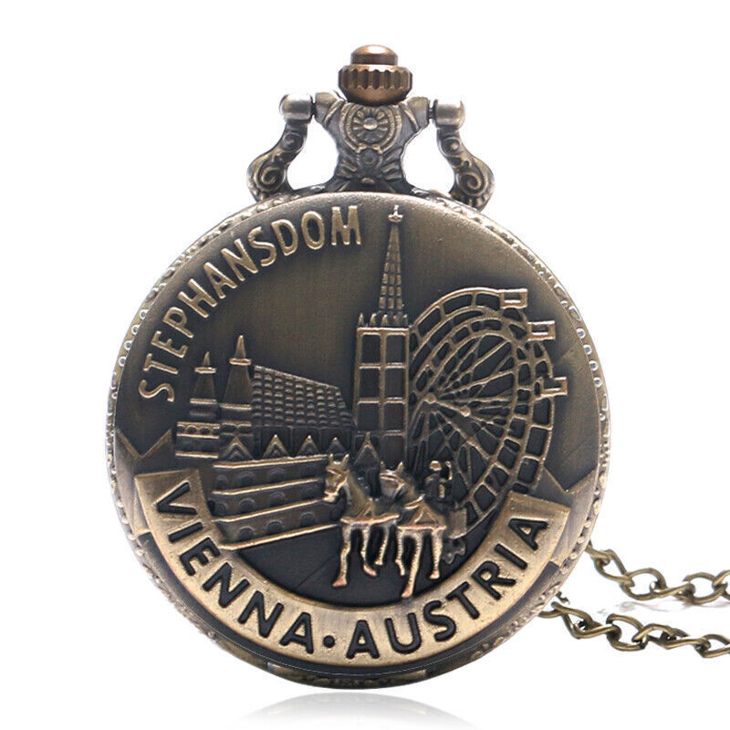 Classical Austria Vienna Design Quartz Pocket Watch Necklace Chain Arabic Number