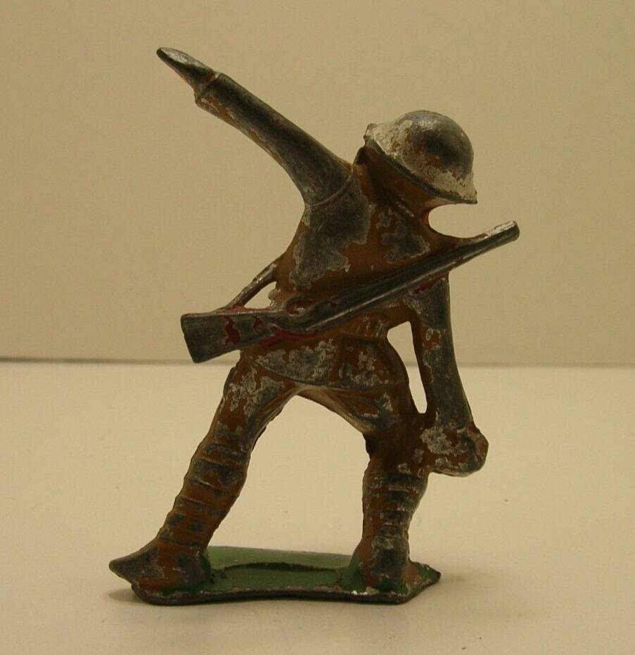 как выглядит Vintage Barclay Manoil Lead Metal Soldier Infantry With Gas Mask Grenade Figure фото