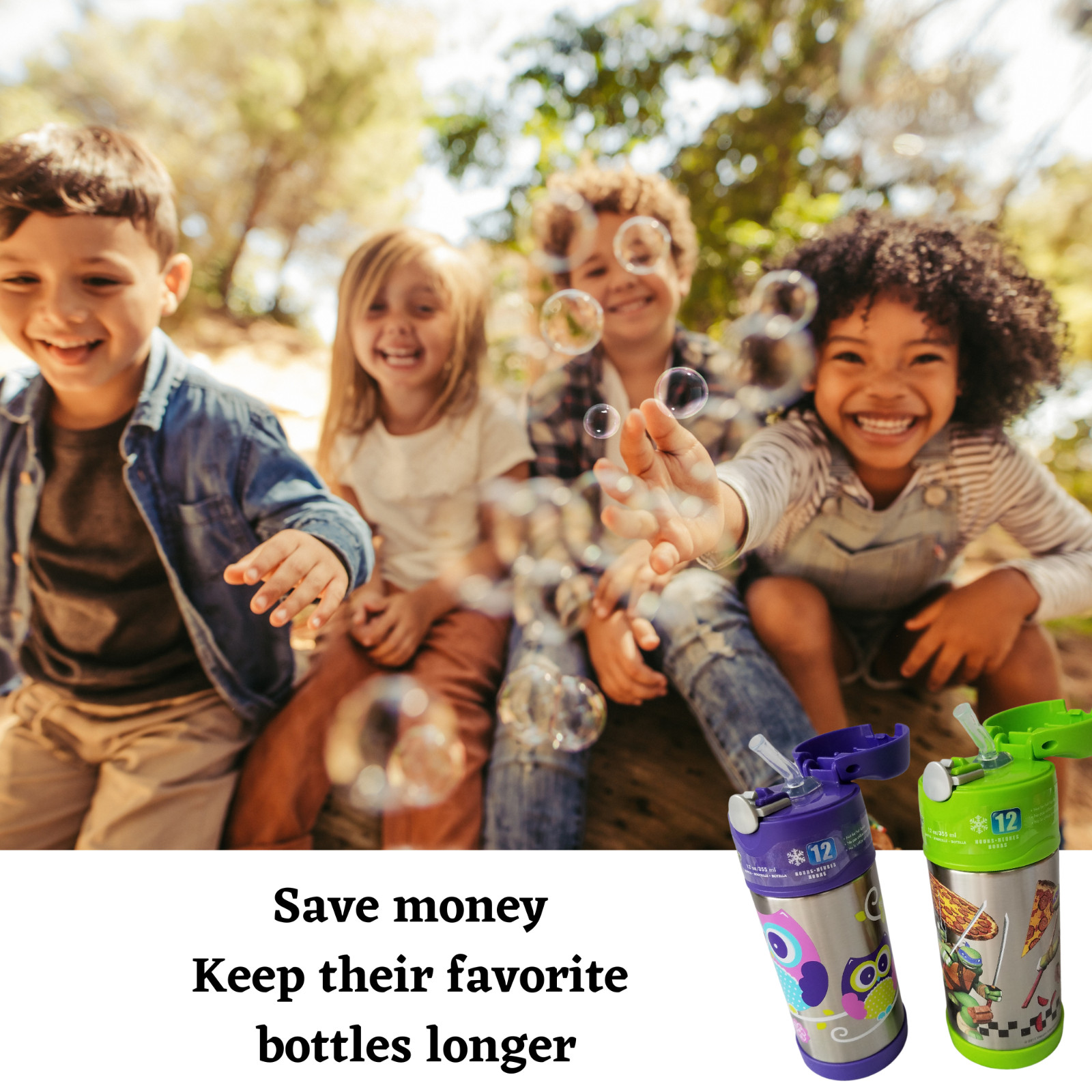 2 Thermos 12oz Funtainer F400 Replacement Straws 2 Stainless Steel Straw Brush