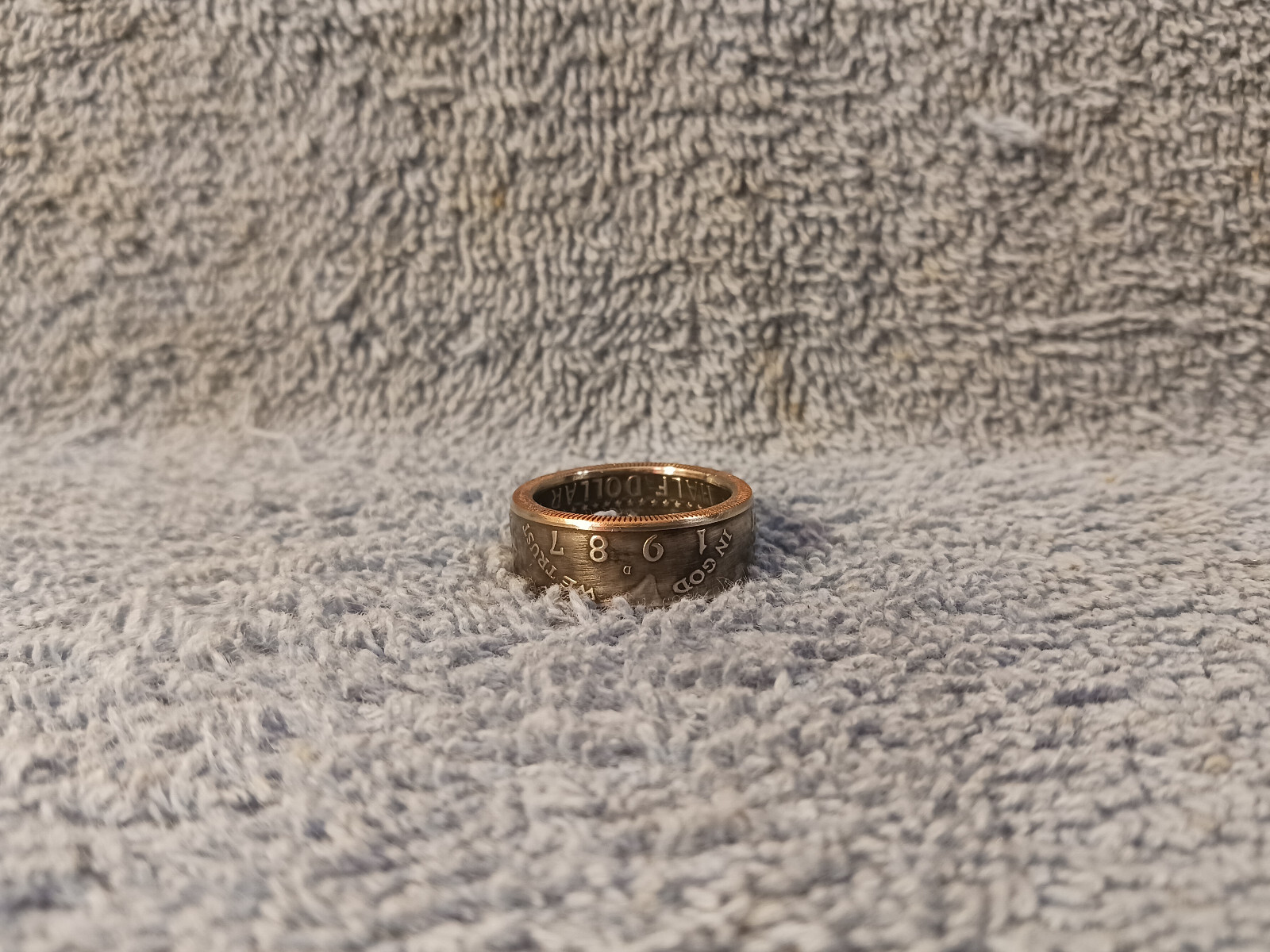 1987 Kennedy Half Dollars size 9 -/2 coin ring Handmade mixed metals B