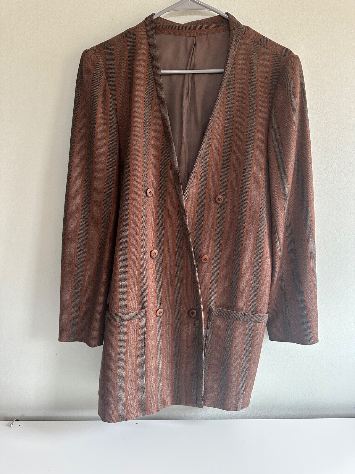 как выглядит VTG Double Breasted Wool Blend Long Blazer Size 4-6 фото