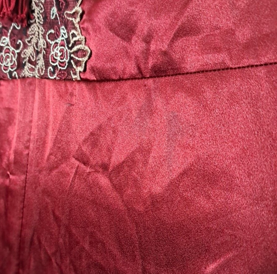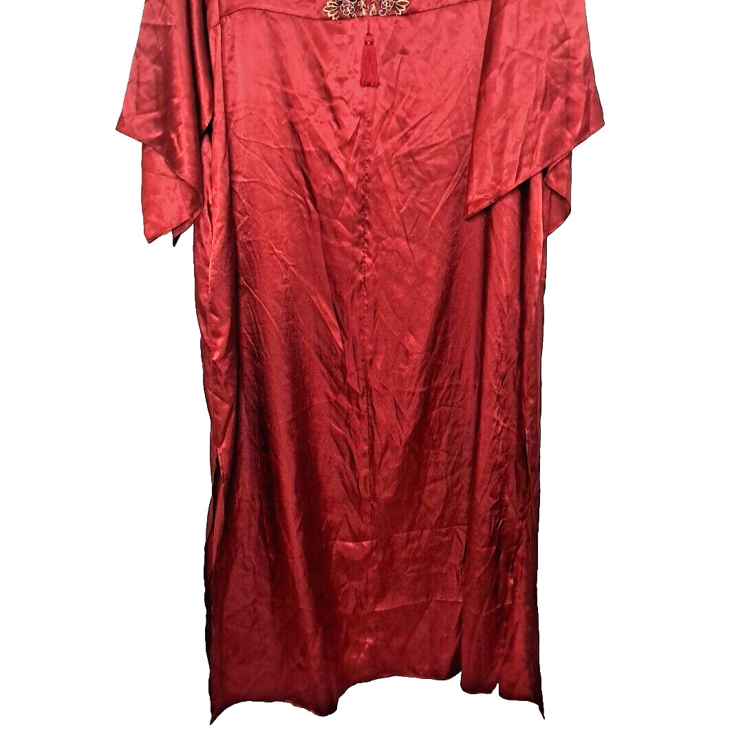 Vintage Valarie Stevens Satin Lace Long Kimono Robe Size XL Red Full Zip Tassel