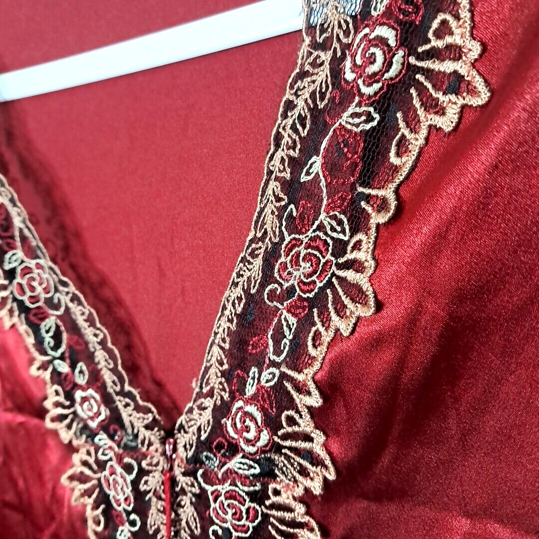 как выглядит Vintage Valarie Stevens Satin Lace Long Kimono Robe Size XL Red Full Zip Tassel фото