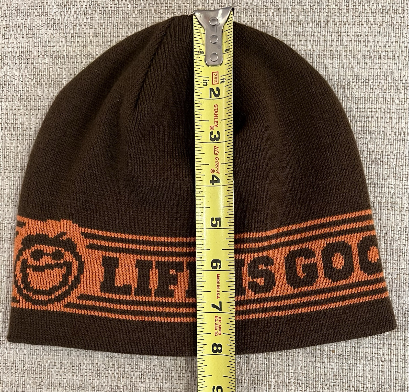 NWOT Life Is Good Brown Orange Beanie Ski Hat Toboggan Toque