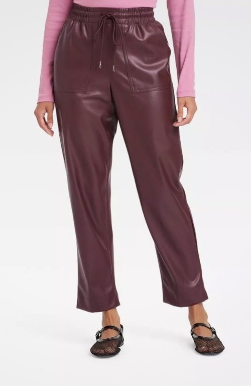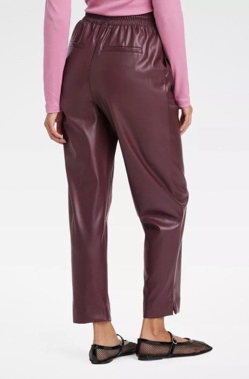 как выглядит Womens High-Rise Faux Leather Tapered Ankle Pull-On Pants - A New Day S фото