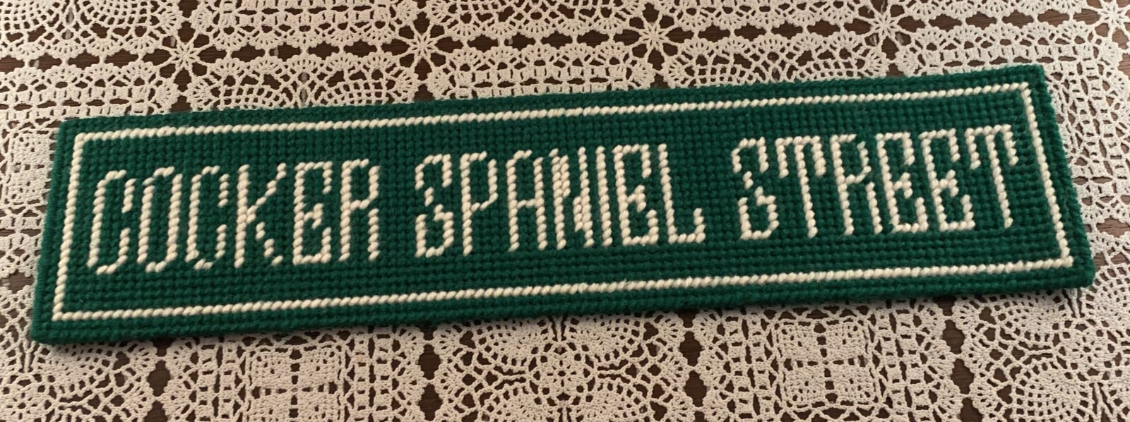 Handmade COCKER SPANIEL STREET Needlepoint Sign Dog Lover Gift 15 In Brand New