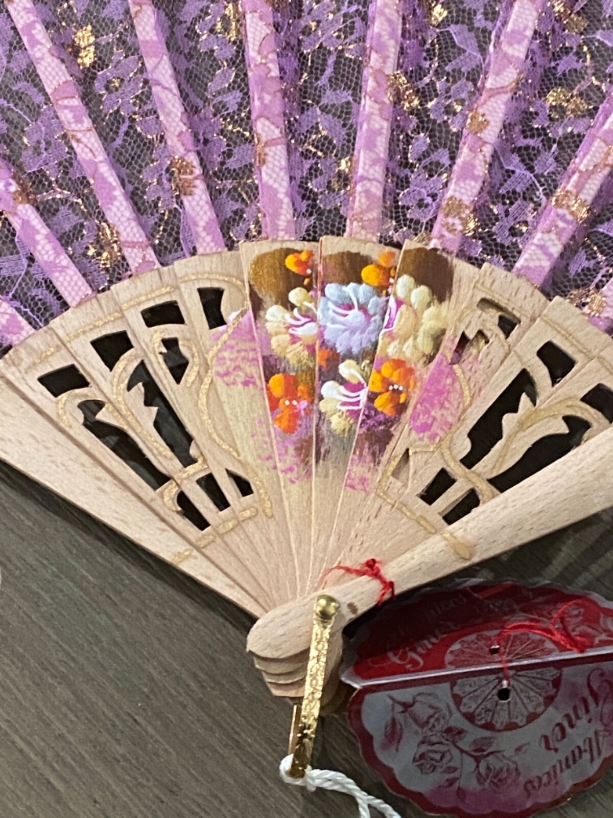 как выглядит Abanicos Giner Hand Painted Lace Trim Hand Fan Vintage 1960-70