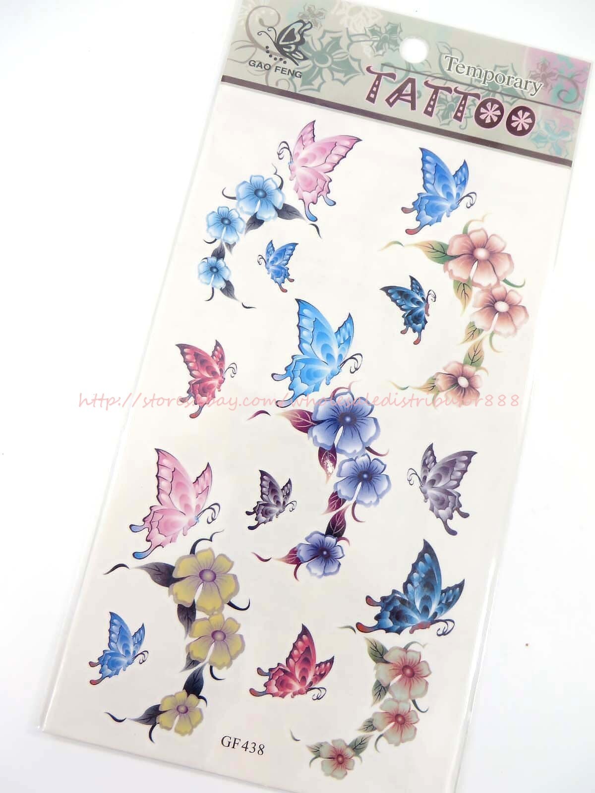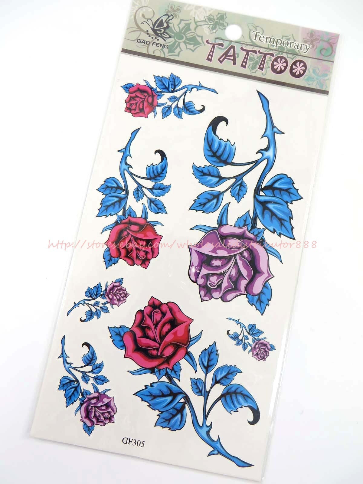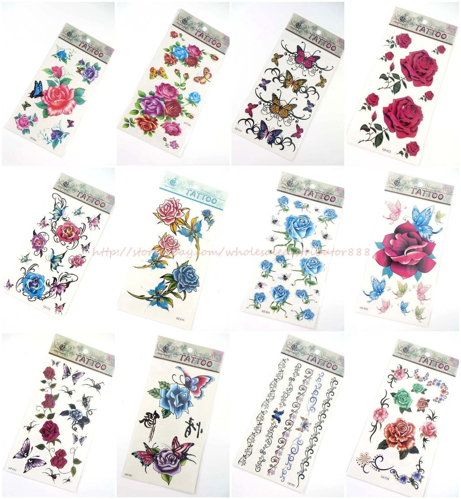 12 sheets temporary tattoo rose body sticker wholesale floral butterfly