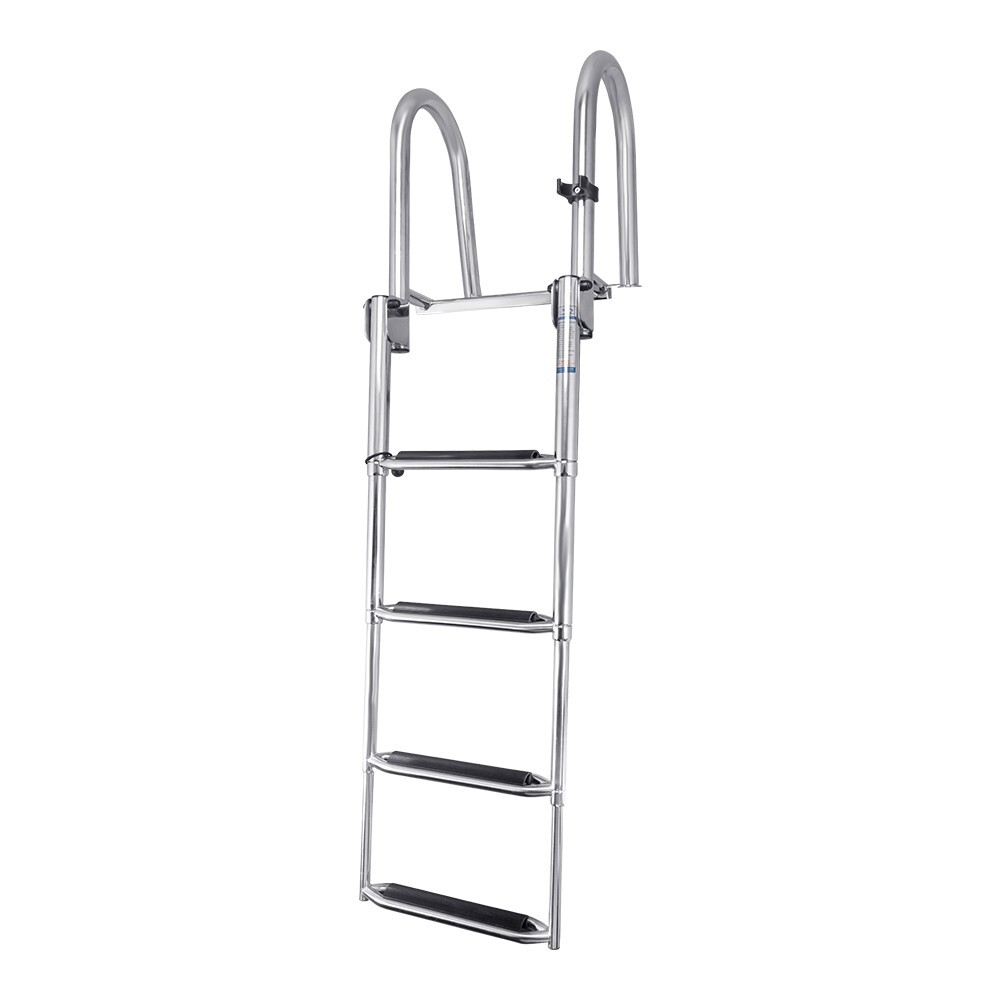 WhiteWater B00351PL-WS -Rear Entry Folding Pontoon Boat Ladder 304 SS 4 Step