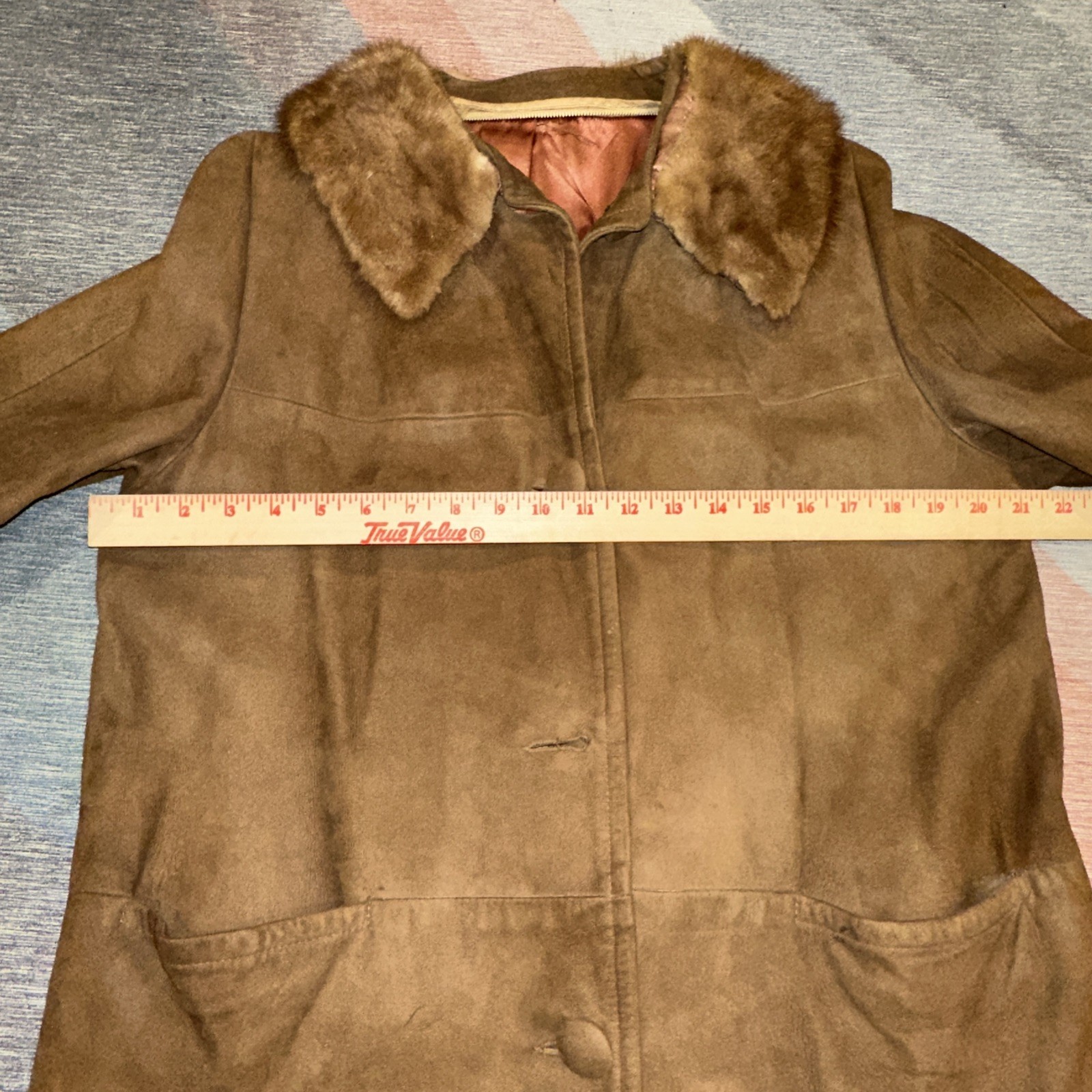 как выглядит SUEDE COAT VTG w/MINK COLLAR LINED Unbranded Women s SZ 16- 3/4" Sleeves фото