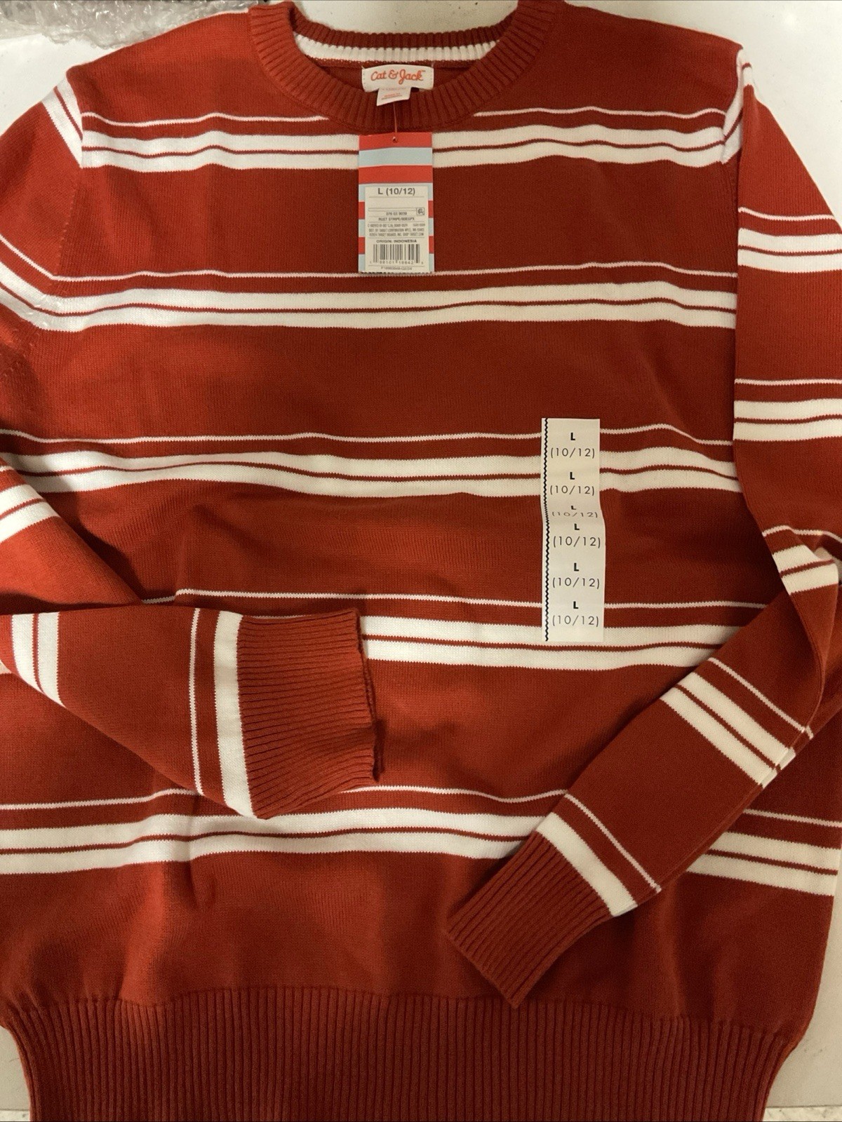 как выглядит Cat Jack Brand Boys Rust Stripe Sweater Size LARGE 10/12 фото