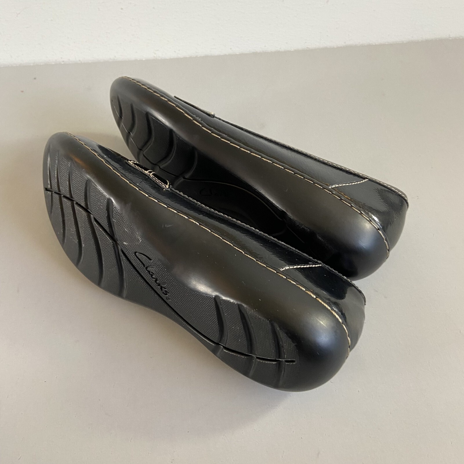 как выглядит Clarks Ashland Bubble Loafers Womens Size 8 N Black Leather Slip On Shoes Shiney фото
