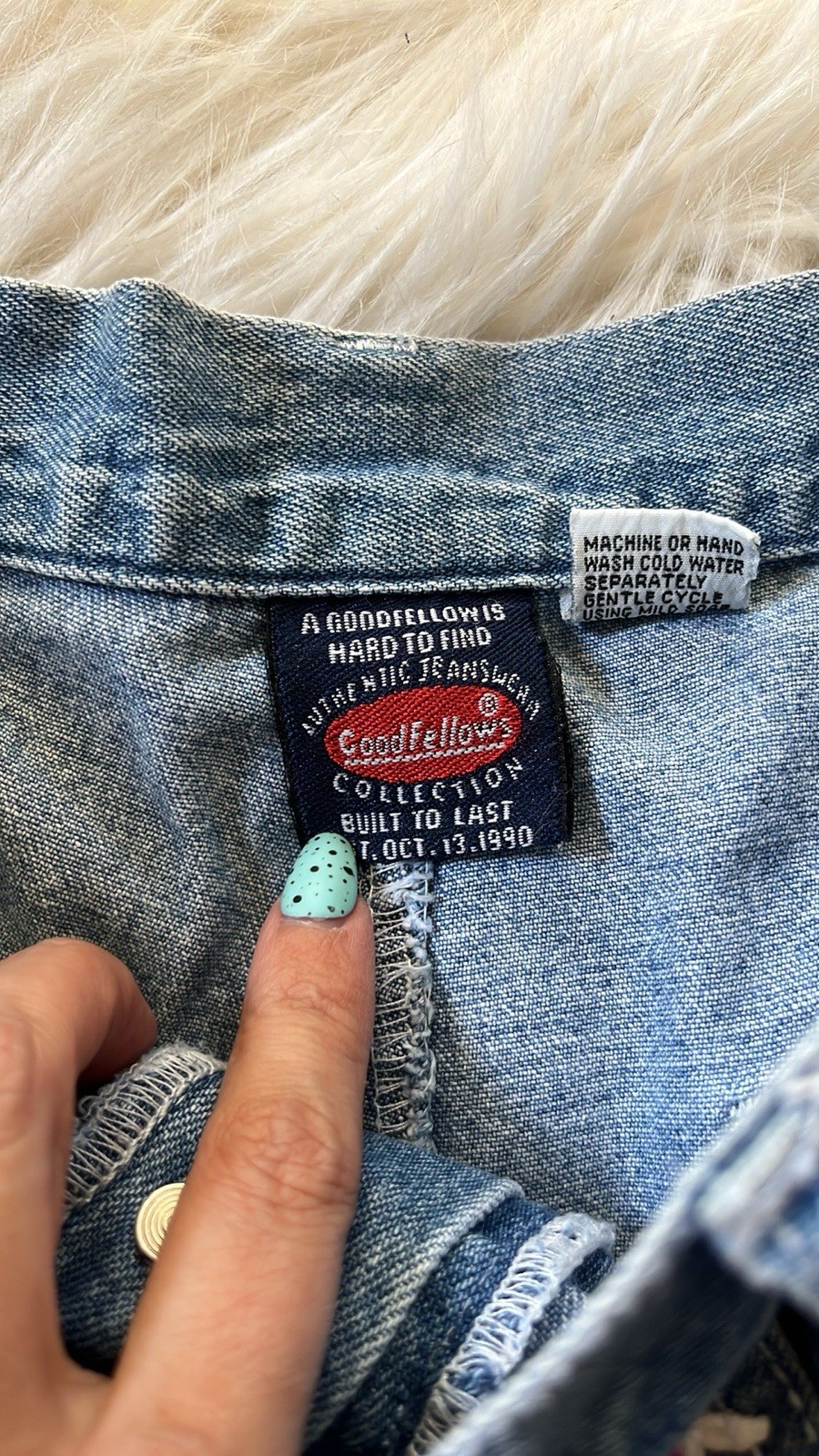 как выглядит Vintage GoodFellows 90s embroidered jean shorts фото