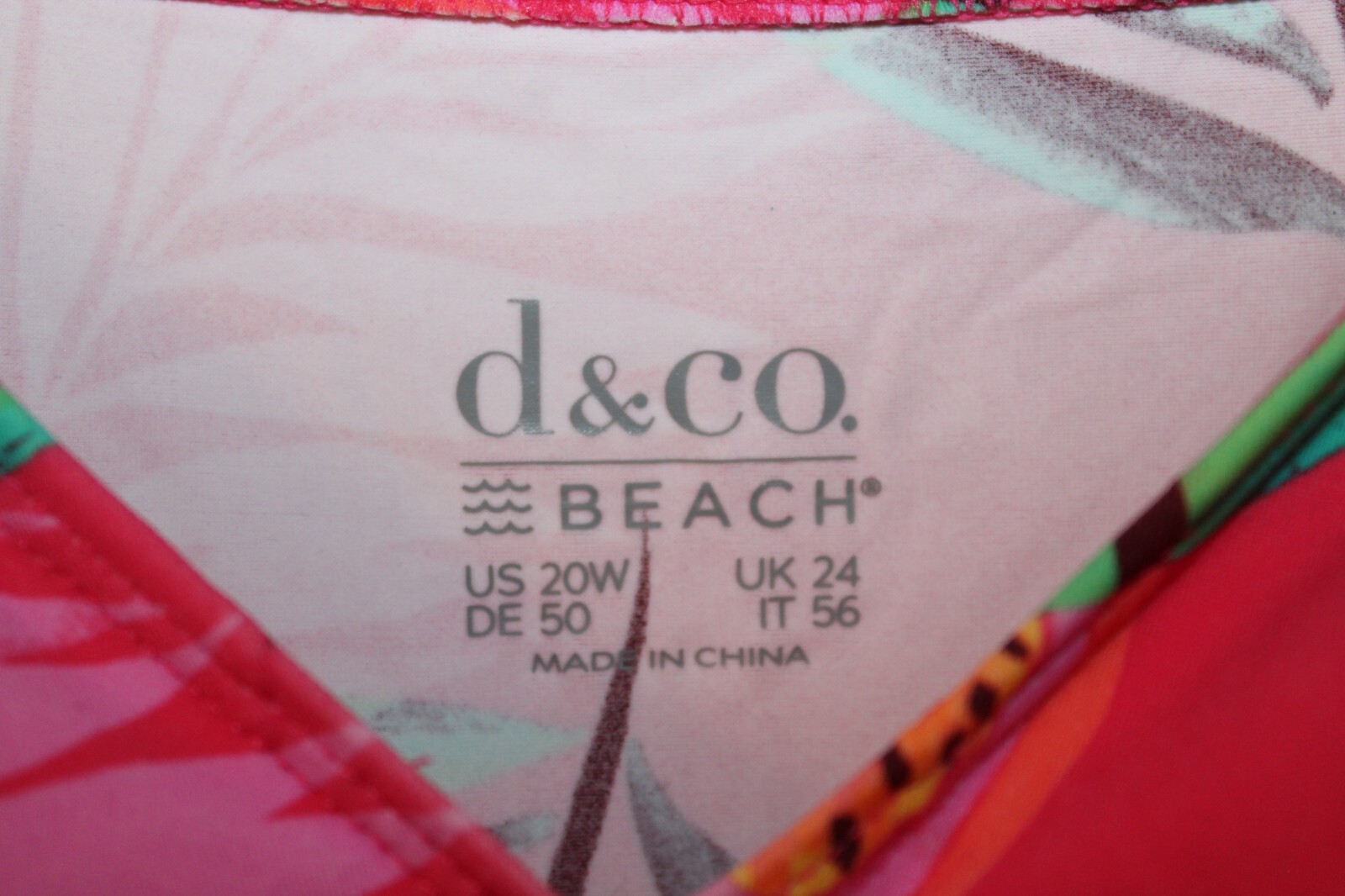 Denim Co. Beach V-Neck Ruched Waist Swim Dress Tropical Pink Floral 20-A634757
