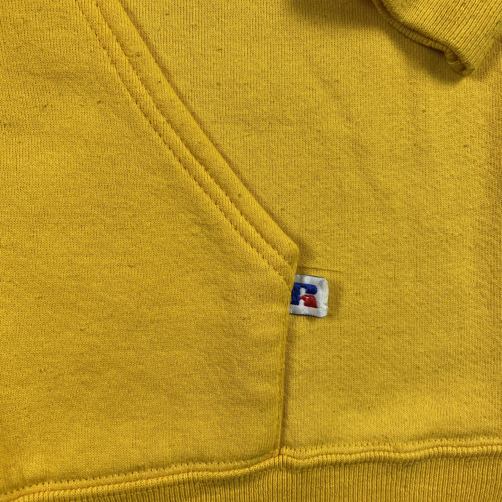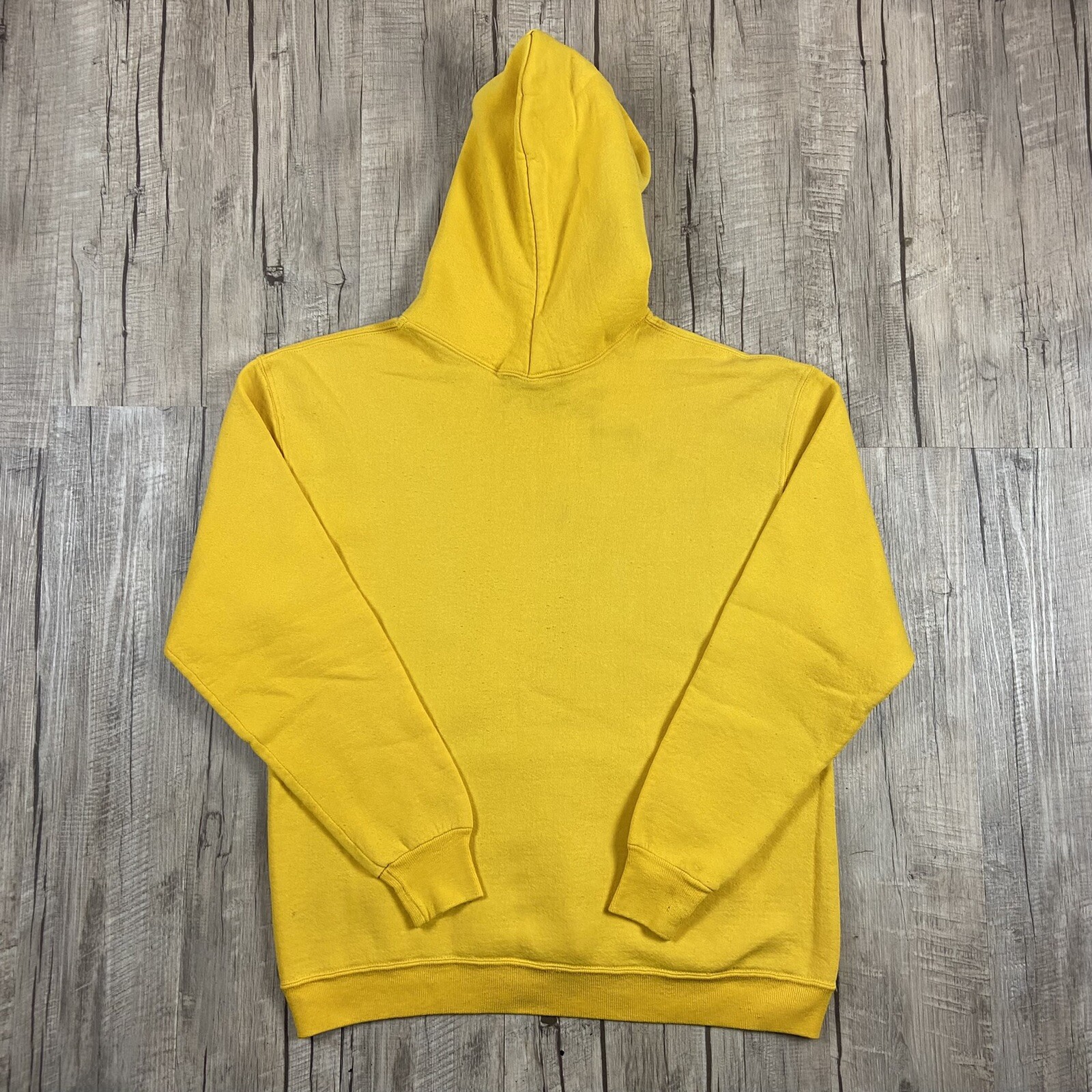 как выглядит Vintage 90s Russell Athletic Blank Pullover Hoodie Yellow Size XL Made In USA фото