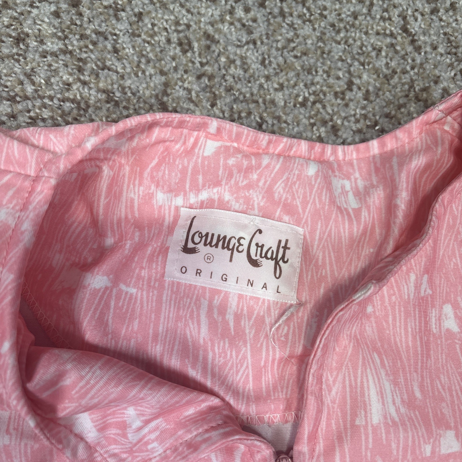 Vintage LOUNGE CRAFT Robe Women s Pink Full Zip 3/4 Sleeve Size Tag Missing