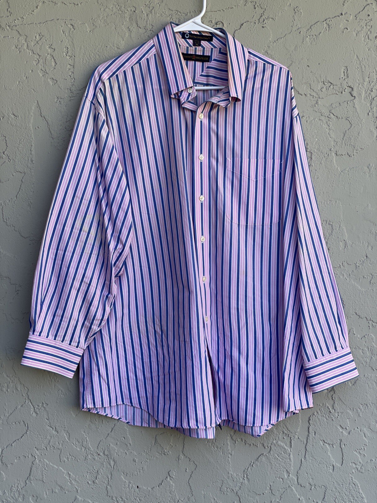 Tommy Hilfiger Dress Shirt Lifetime Collar 17 1/2 32/33 XL Striped Stains
