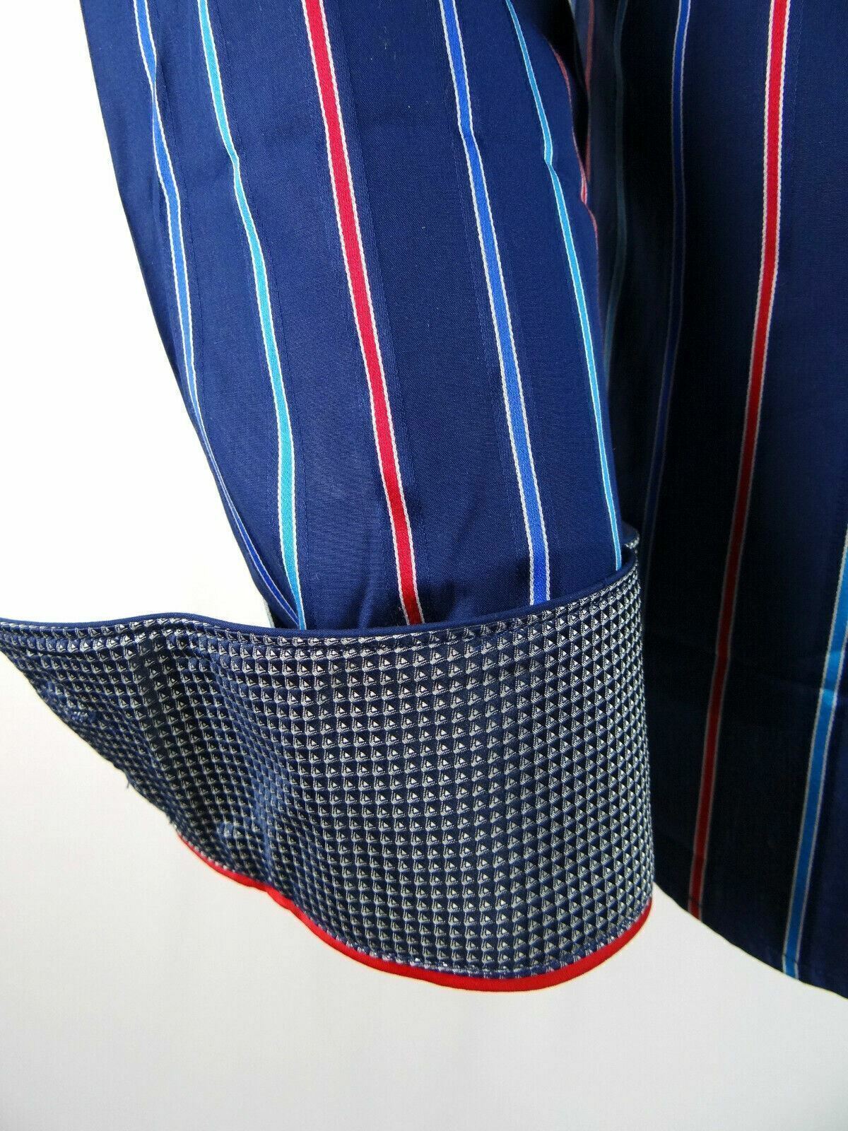как выглядит Mens Striped Casual Shirt Navy Blue HOUSE OF LORDS Premium Cotton Slim Fit фото