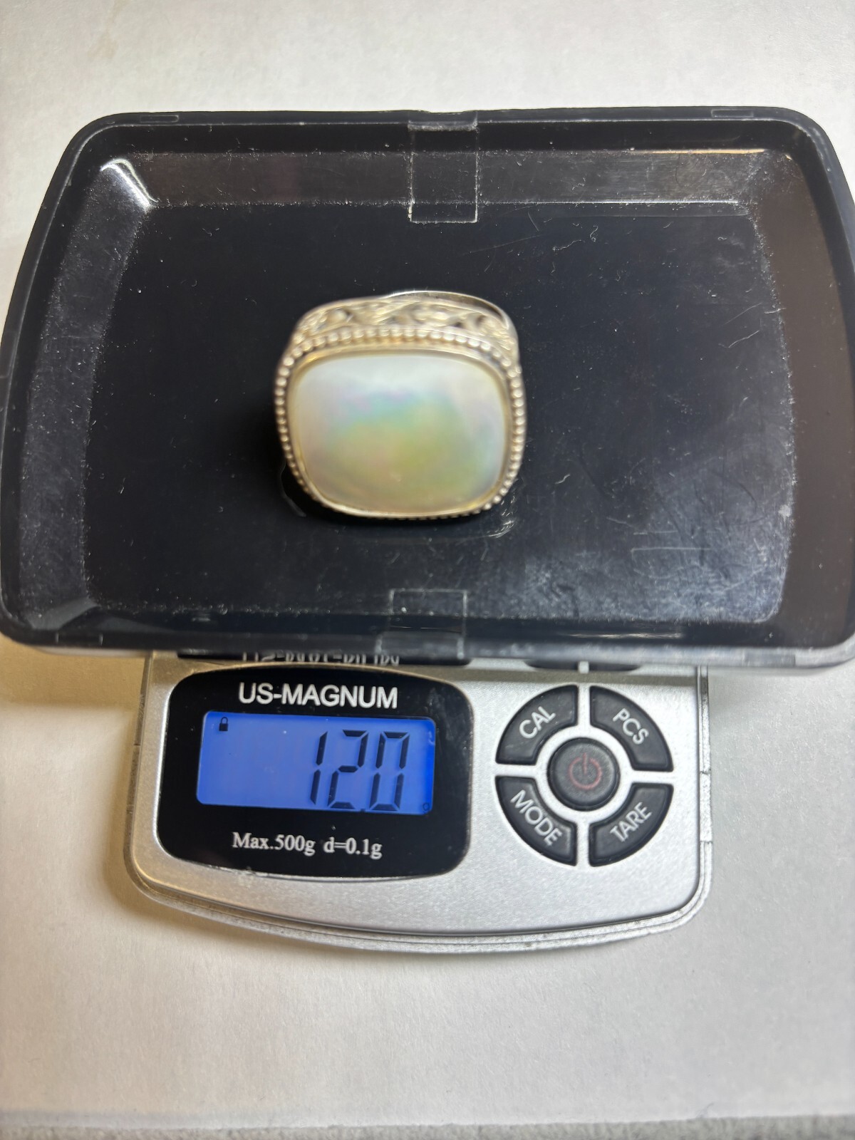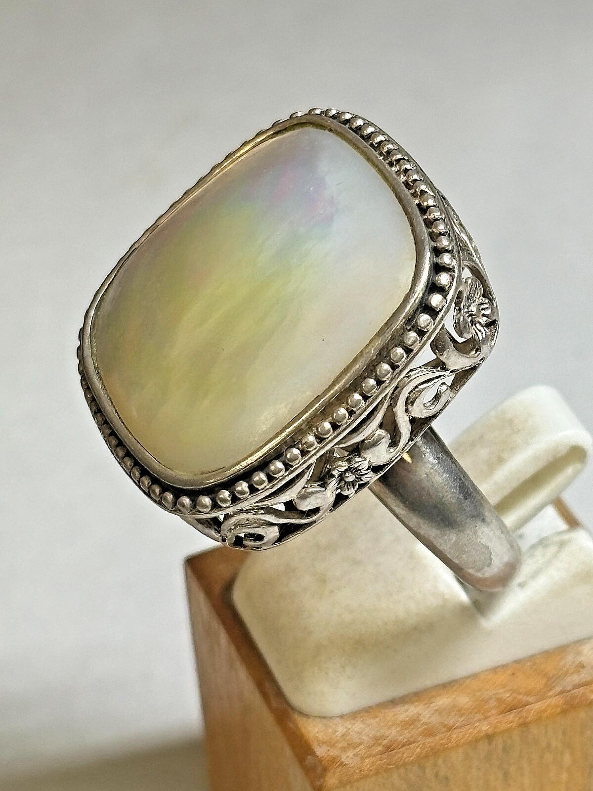 Sterling Silver Large Square Abalone Inlay 24 x 24mm Statement Ring 12g Size 8