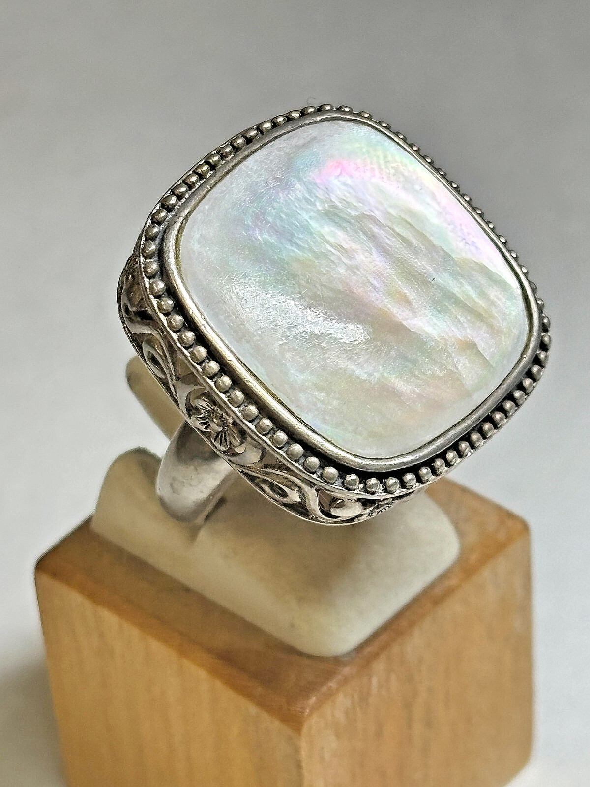 как выглядит Sterling Silver Large Square Abalone Inlay 24 x 24mm Statement Ring 12g Size 8 фото