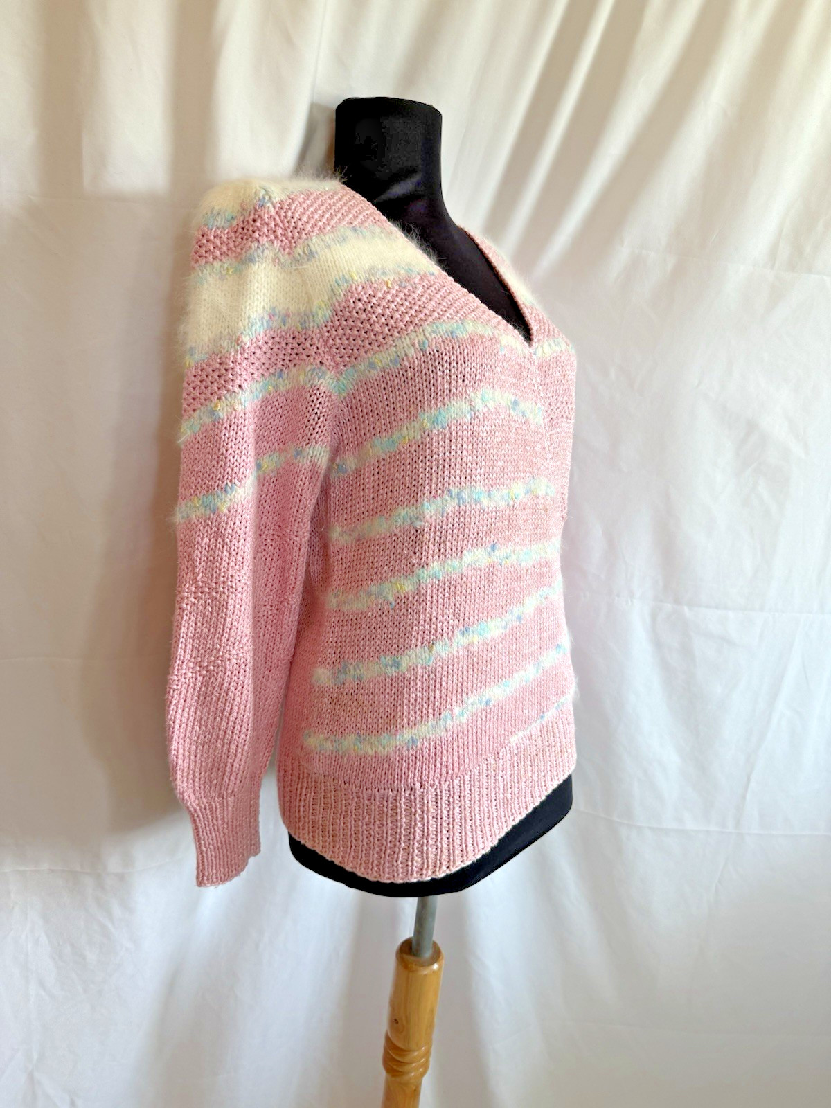 как выглядит Vintage 1980s Pink Sweater W/ Angora Trim - Size Small фото