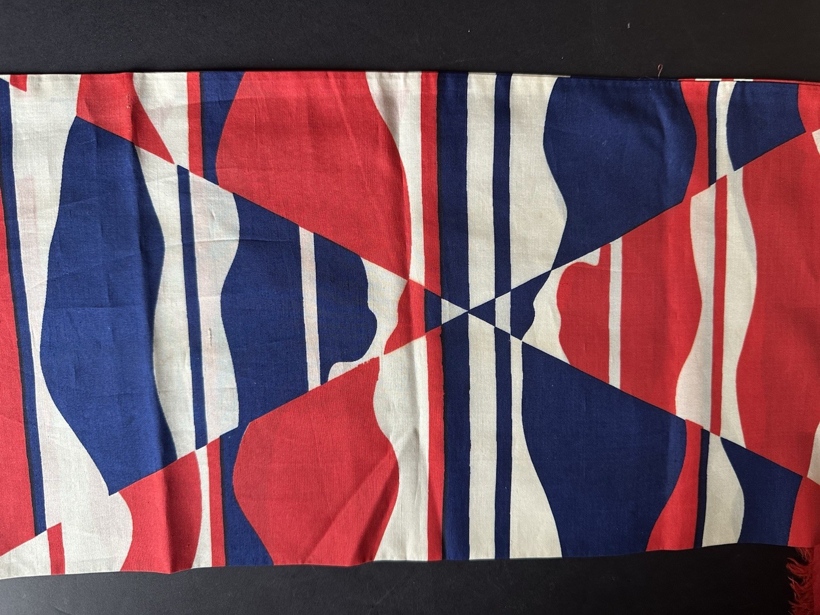 как выглядит Vtg 1970s Silk Scarf Red White Blue 70 x 9 Geometric Mod Art Nautical Summer фото