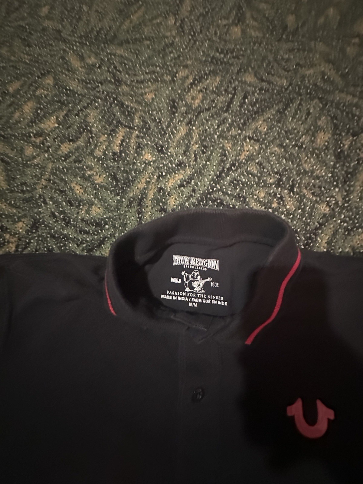 как выглядит TRUE RELIGION MENS BLACK Top, Red Trim, SHORT SLEEVE POLO SHIRT SIZE Med фото