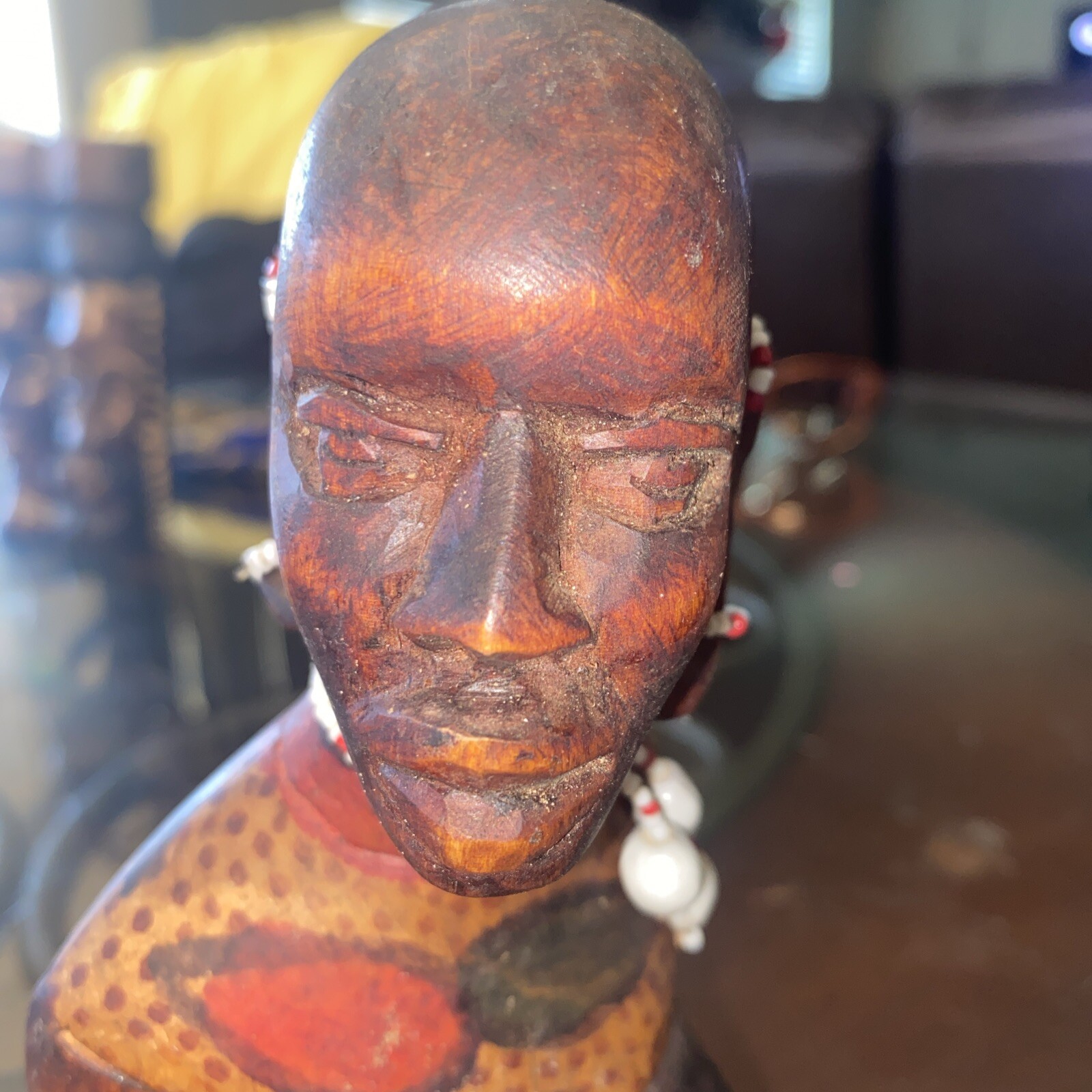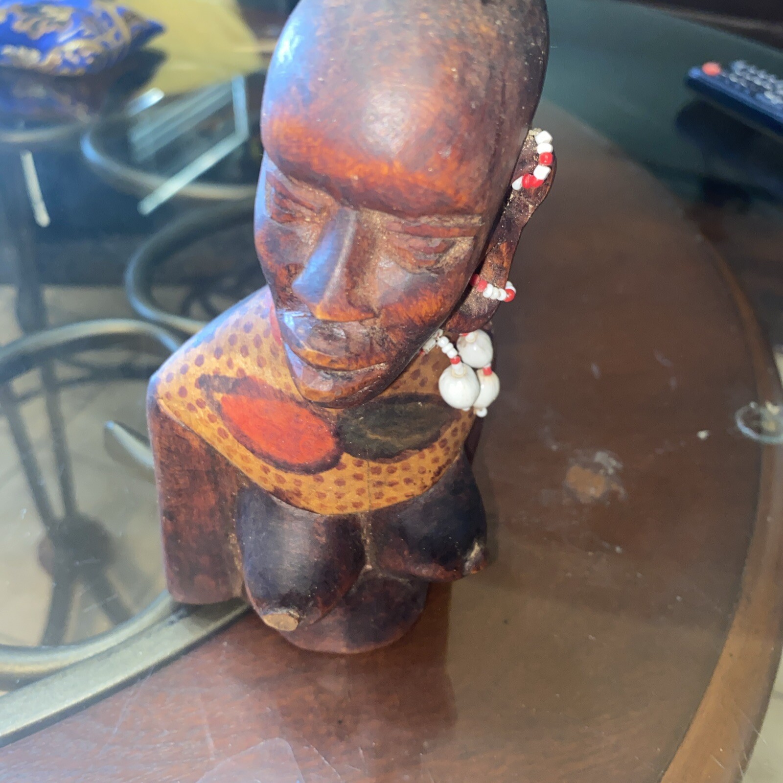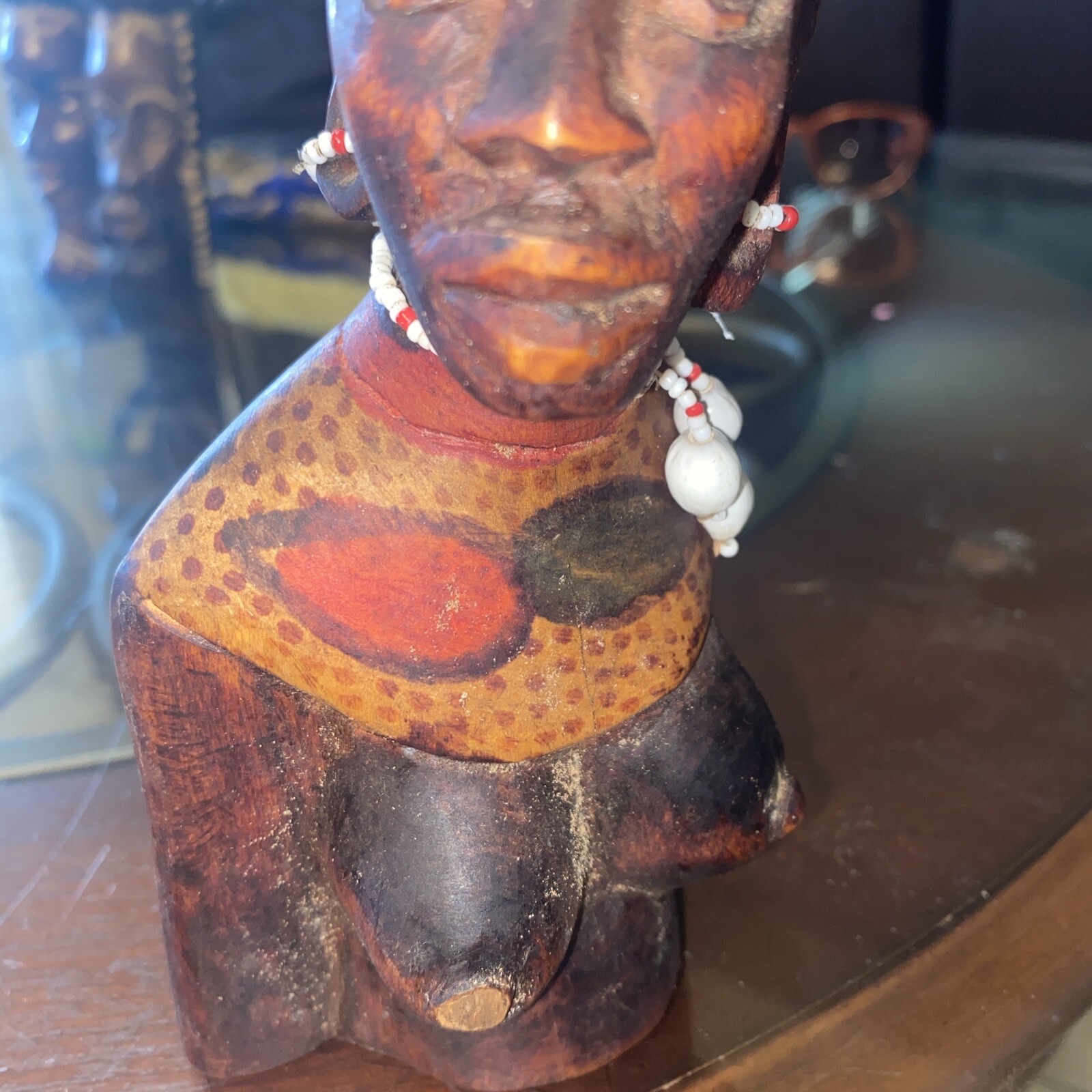 как выглядит African Women, Wood Handmade Crafted With Earrings Neckless Also Handmade фото