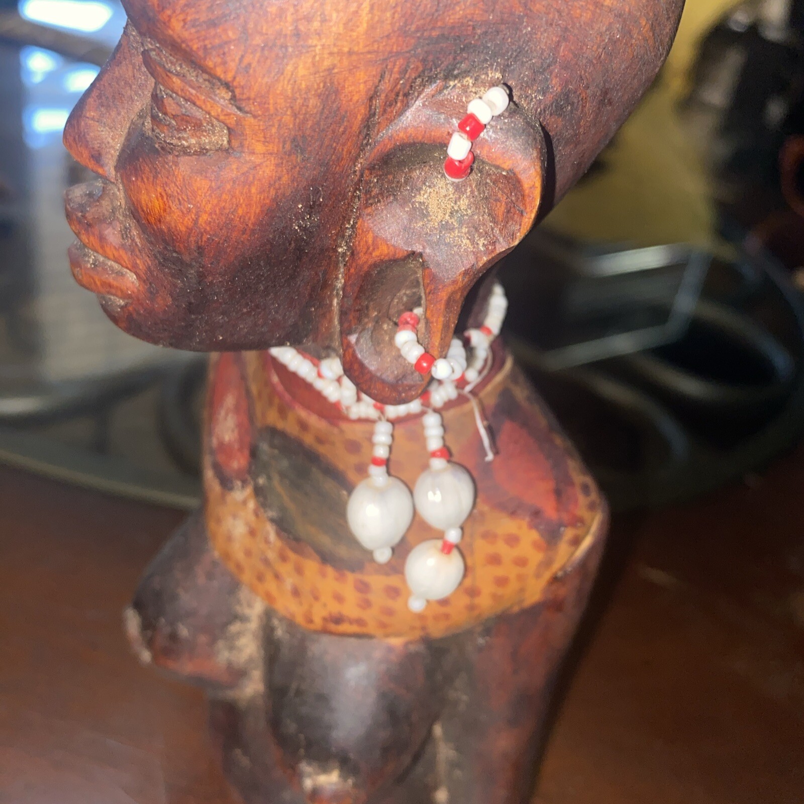 African Women, Wood Handmade Crafted With Earrings Neckless Also Handmade