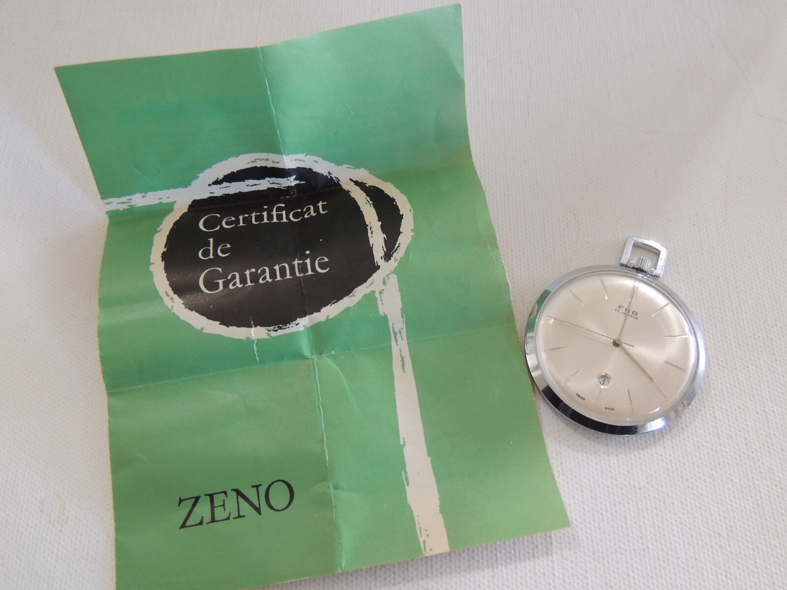как выглядит VINTAGE ZENO MONTRE FHB 17 JEWEL SWISS MADE POCKET WATCH W/ CERTIFICATE фото