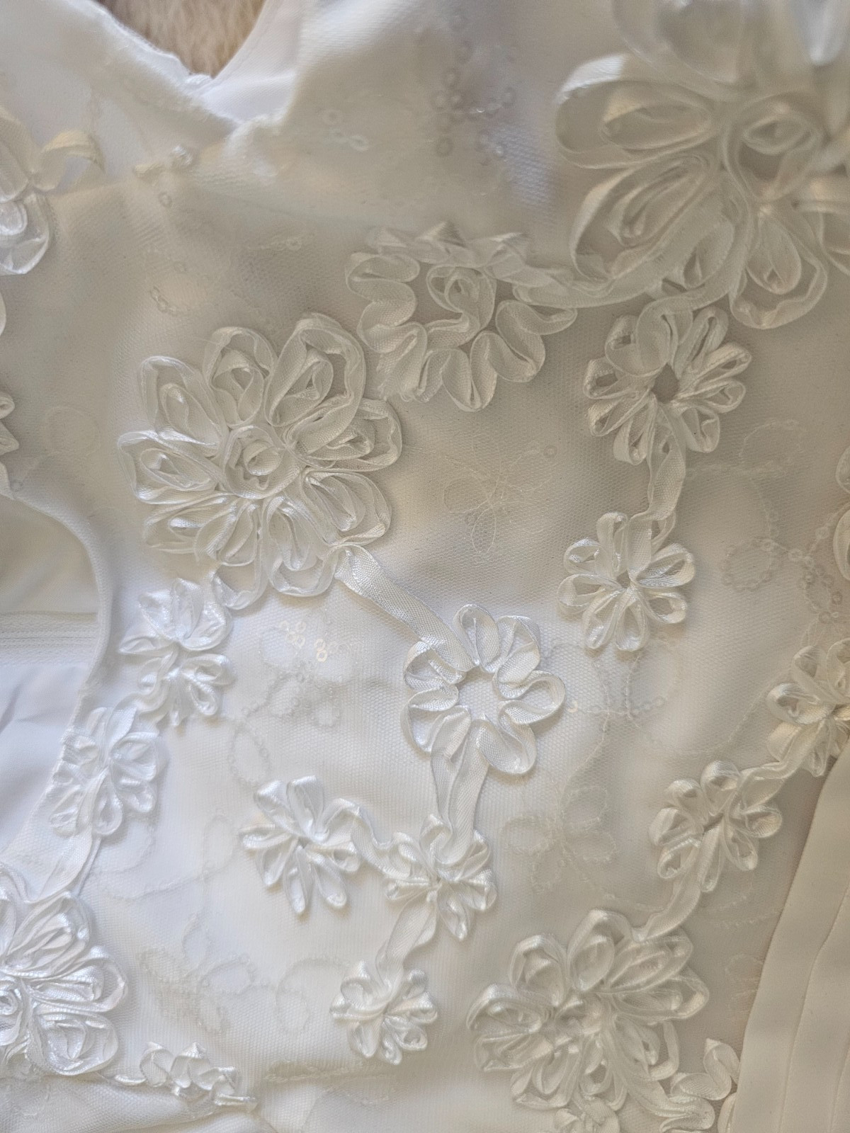 как выглядит GIRL DRESS Lovely Feminine White Lace Wedding Baptism Communion Sz 6X фото