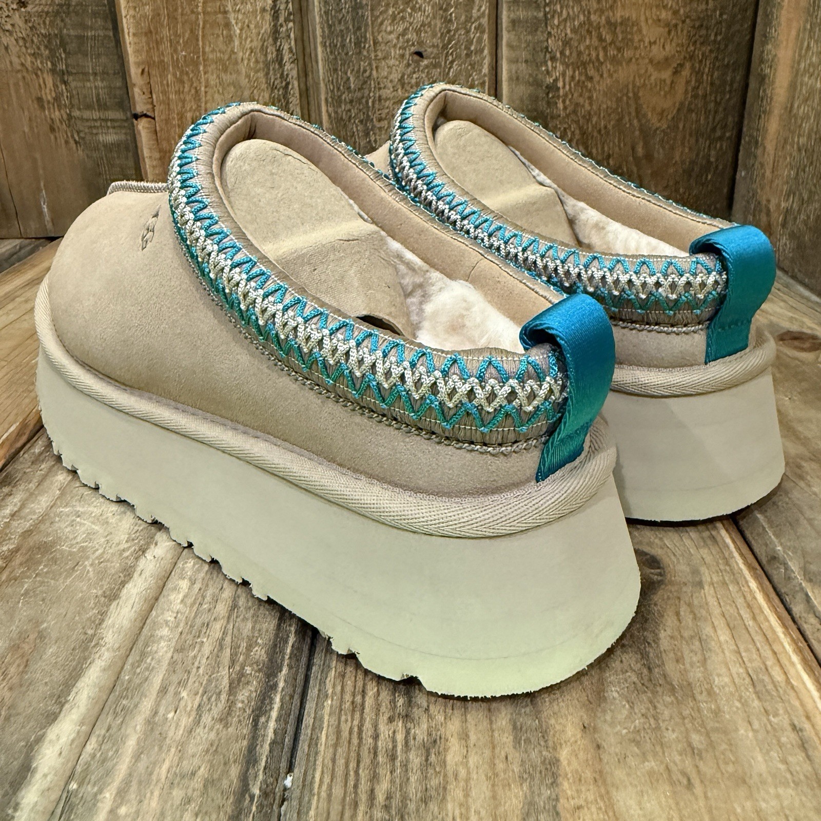 UGG TAZZ PLATFORM SLIPPER WOMENS US 8 DRIFTWOOD WHITE PEPPER SUEDE / WOOL
