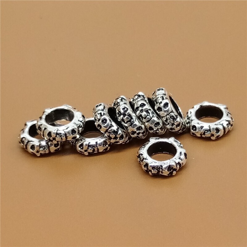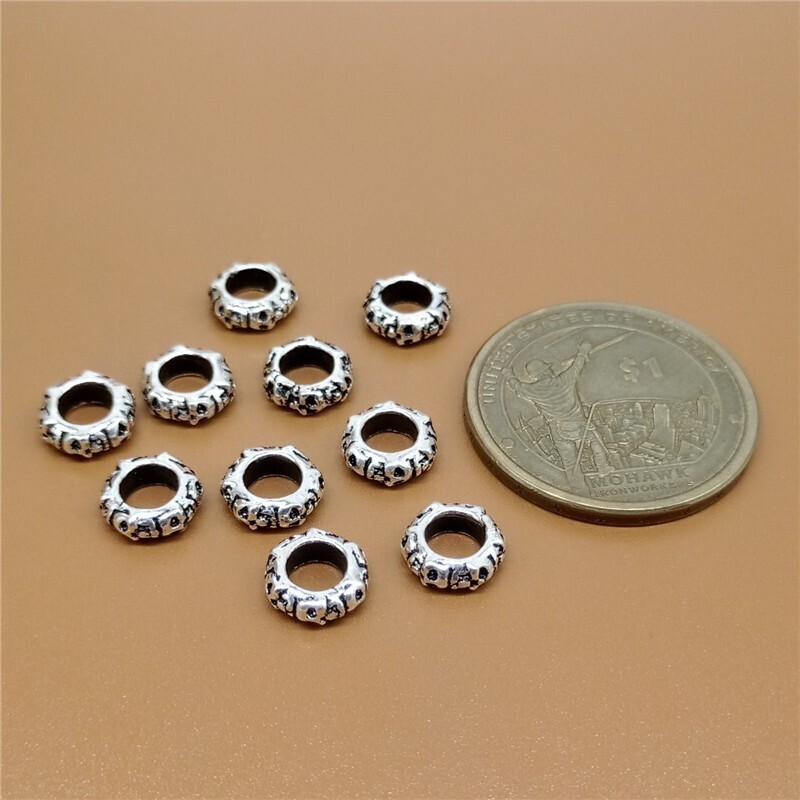2 Sterling Silver 6-sided Skull Beads 925 Silver Skeleton Spacer for Bracelet
