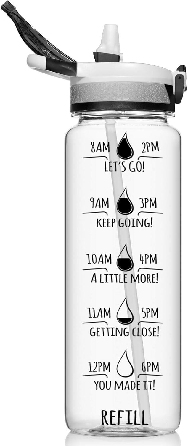 NatureWorks HydroMATE 32 oz Water Bottle with Time Markings 1 Liter Clear