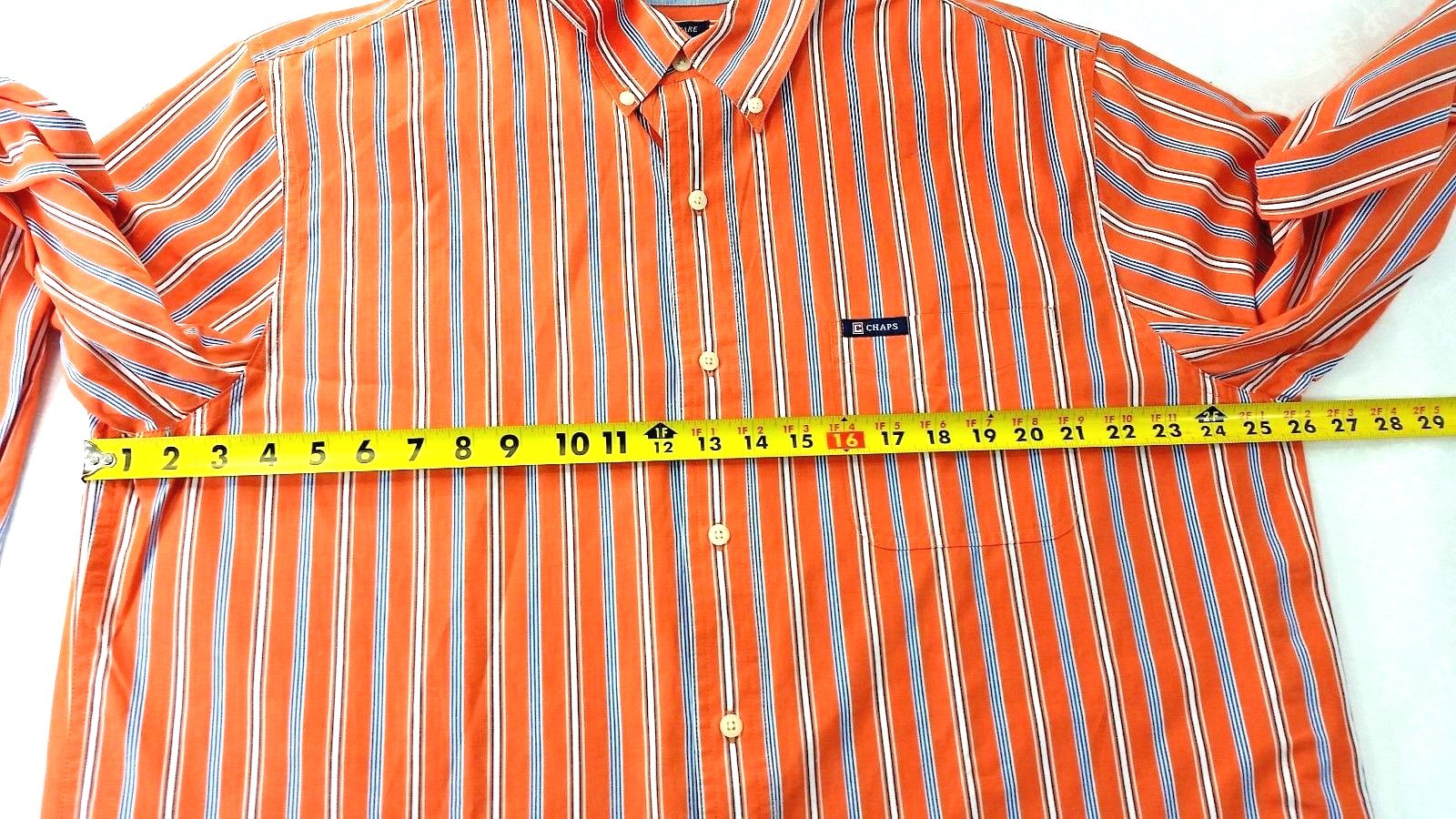как выглядит Chaps Orange Striped Easy Care Long Sleeve Button Down Dress Shirt Mens XLarge фото