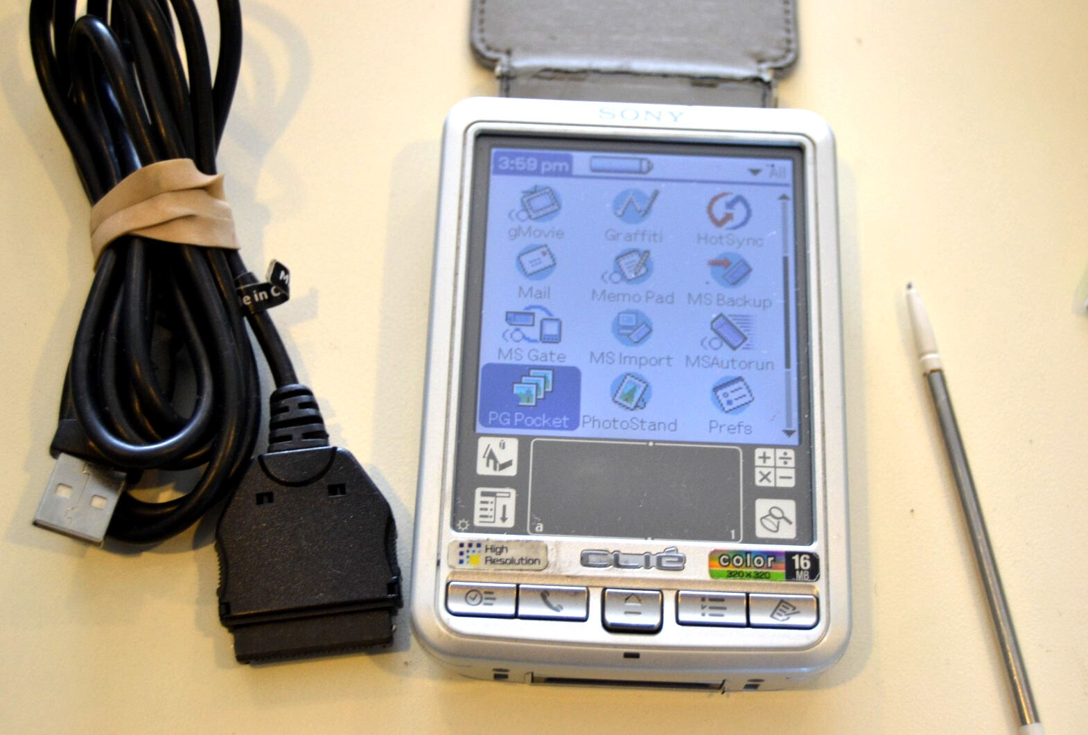 Sony Clie PDA Model PEG-SJ30 W/ cd chargers stylus and peripherals works great