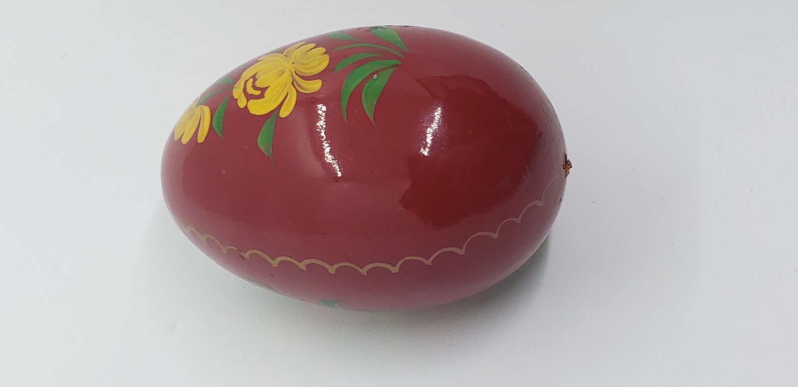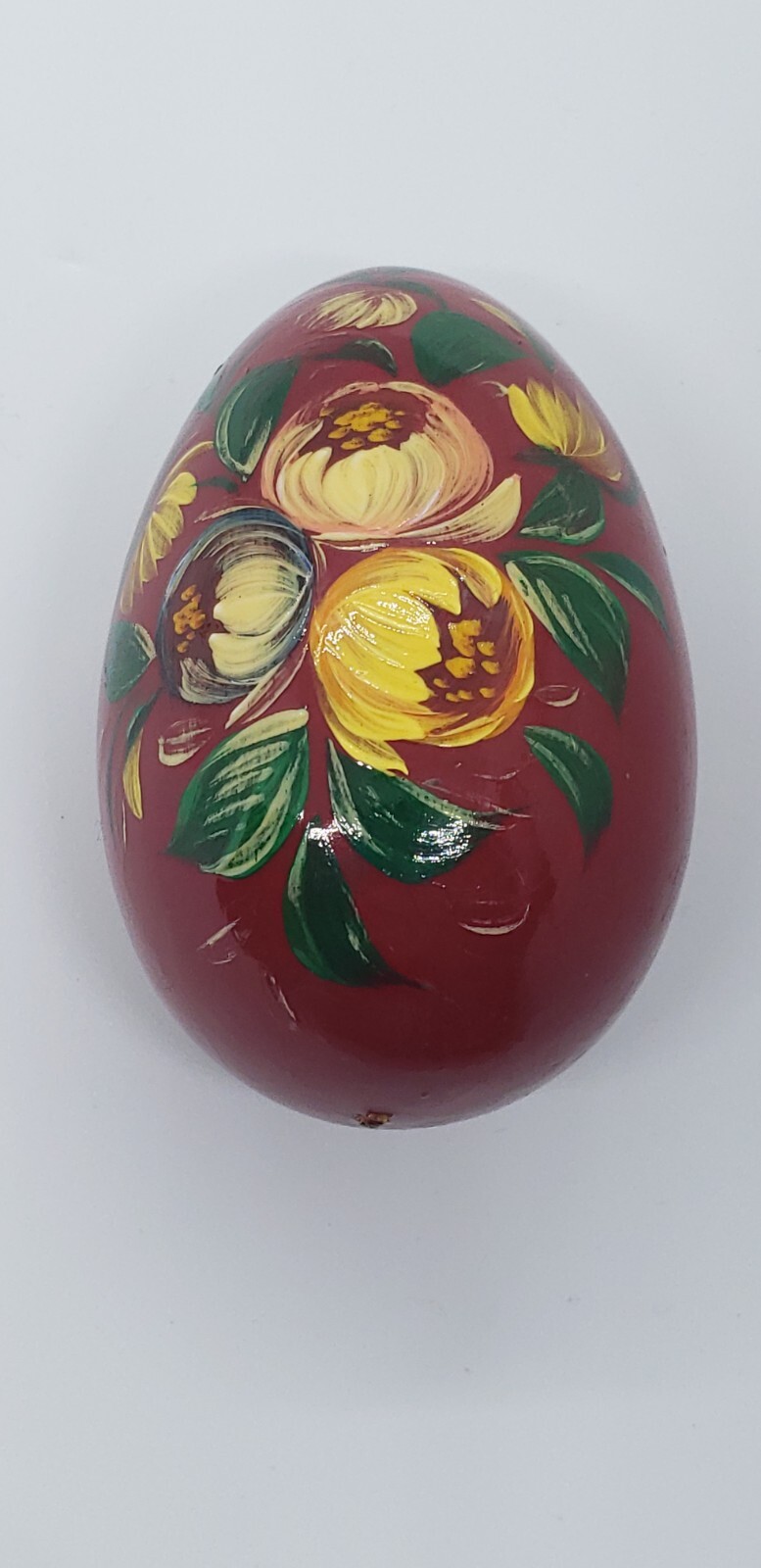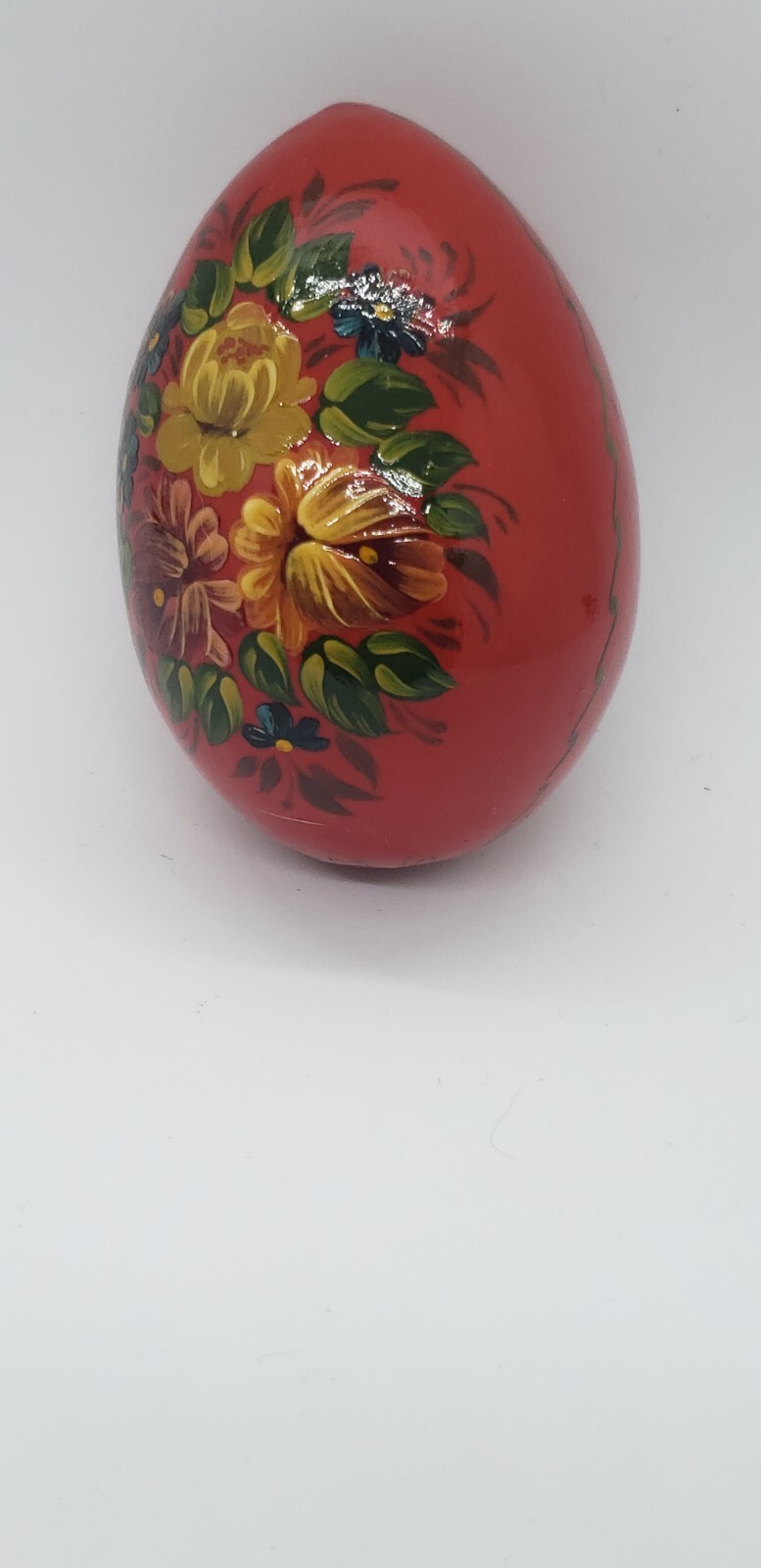 Set 2 Extremely Fine Hand painted Red Russian Wooden Egg Signed Floral Lacquer