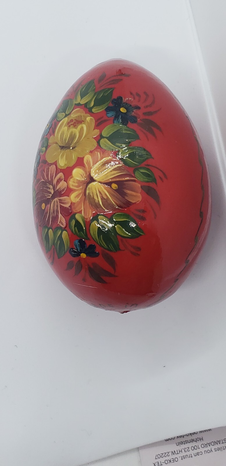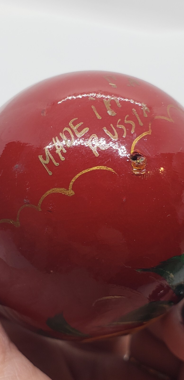 как выглядит Set 2 Extremely Fine Hand painted Red Russian Wooden Egg Signed Floral Lacquer фото