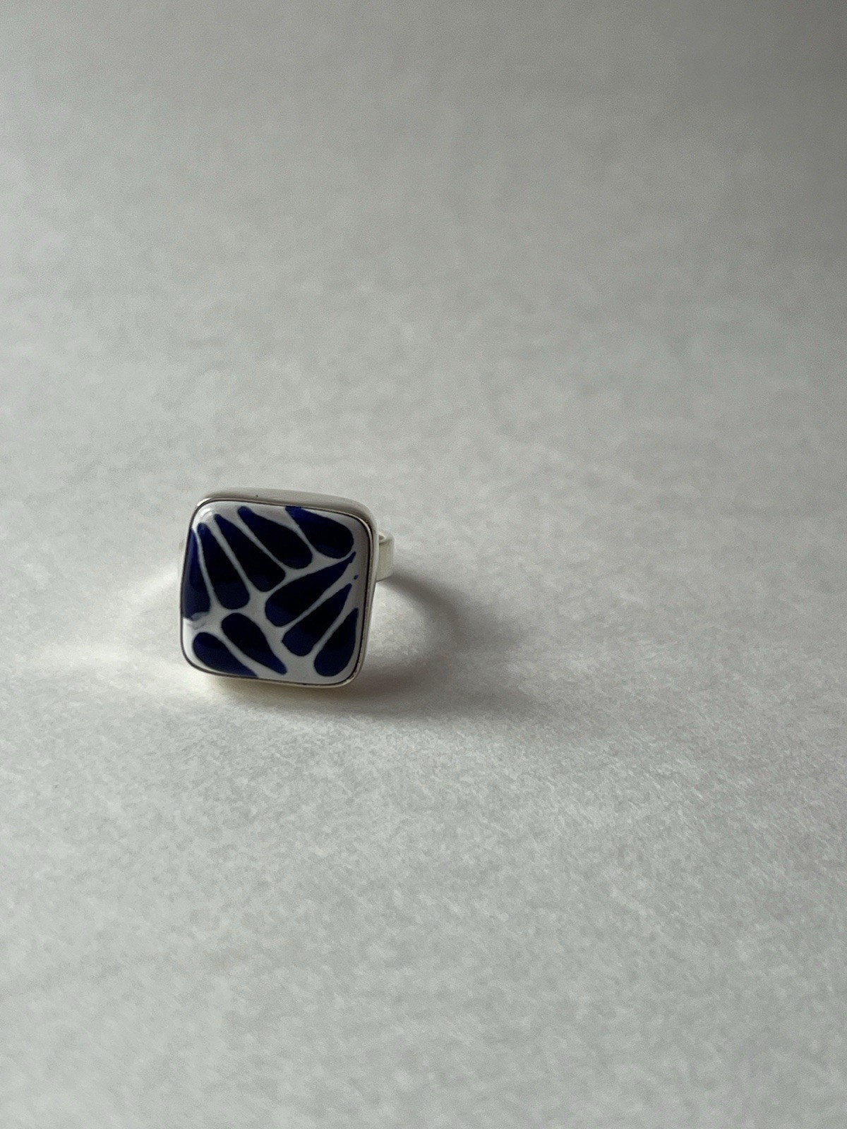 Square Talavera Ring 925 Sterling Silver Artisan Handmade