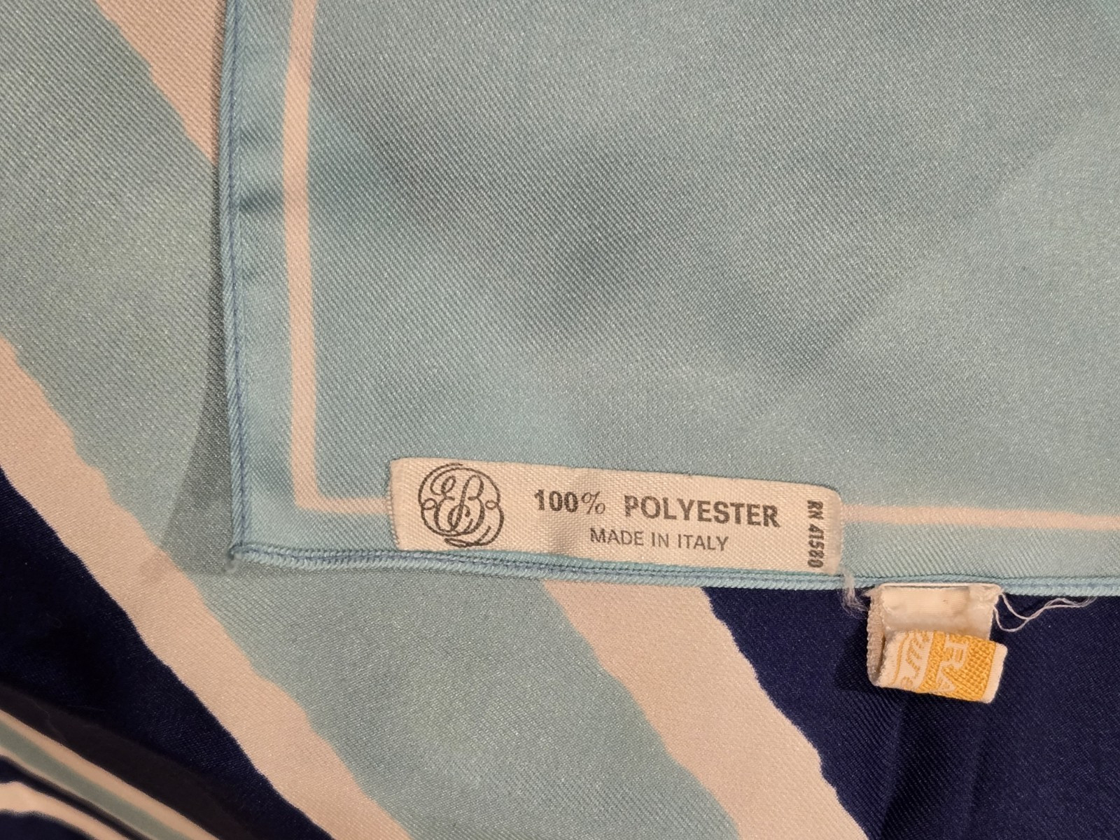 как выглядит Vintage Trevira Blue White Diagonal Striped 26" Square Scarf Made in Italy фото