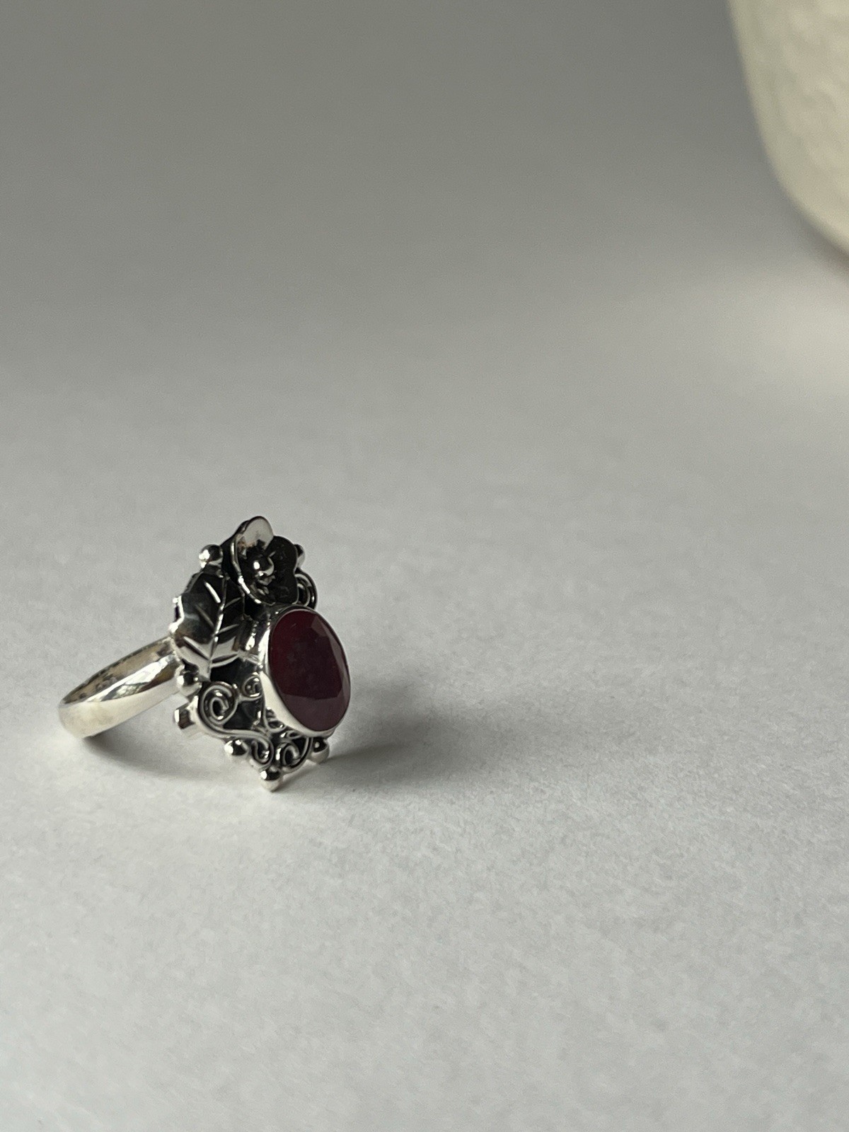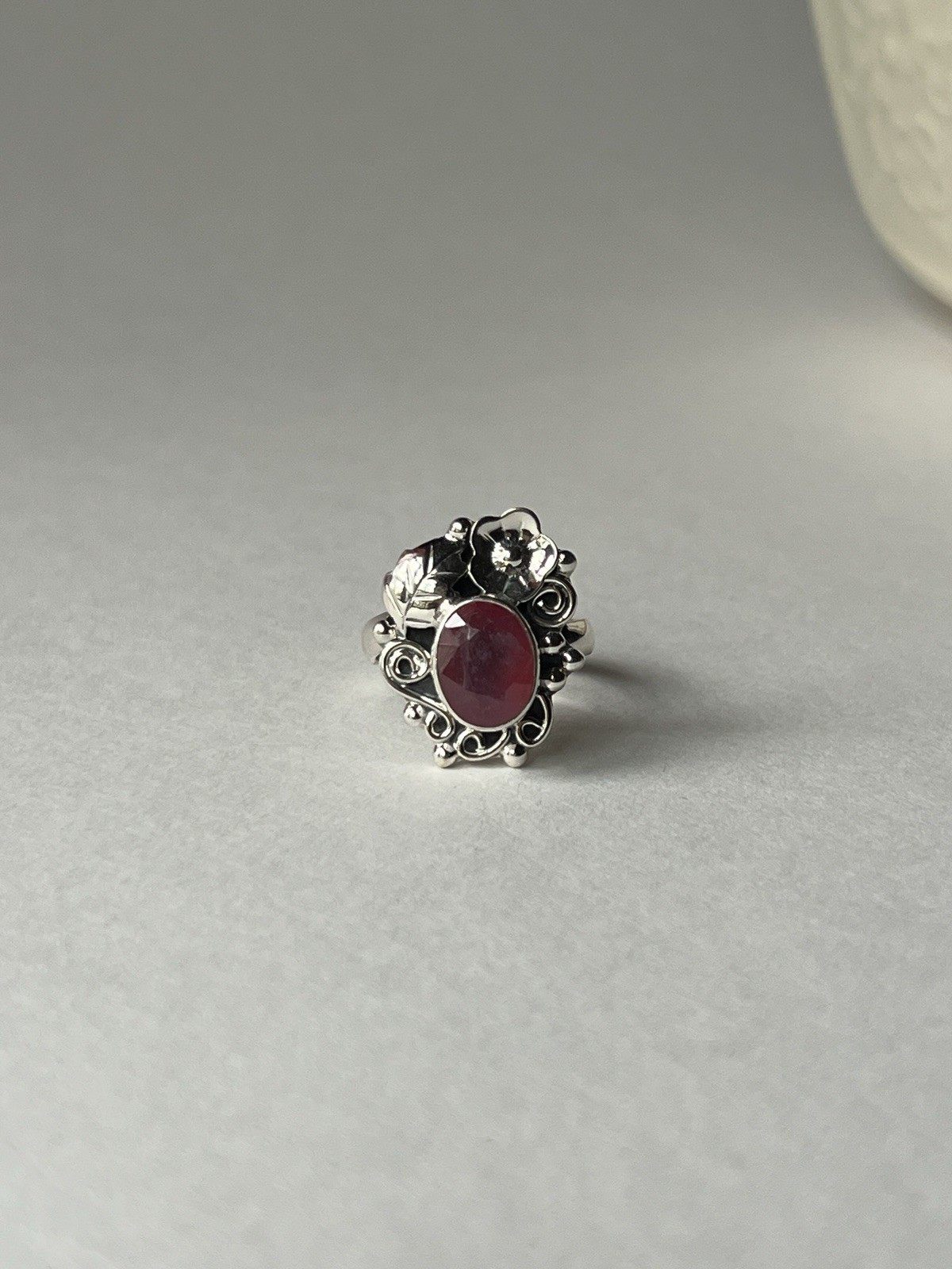 как выглядит Red Coral Floral Ring 925 Sterling Silver, Adjustable Size фото