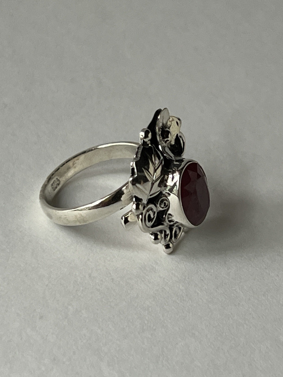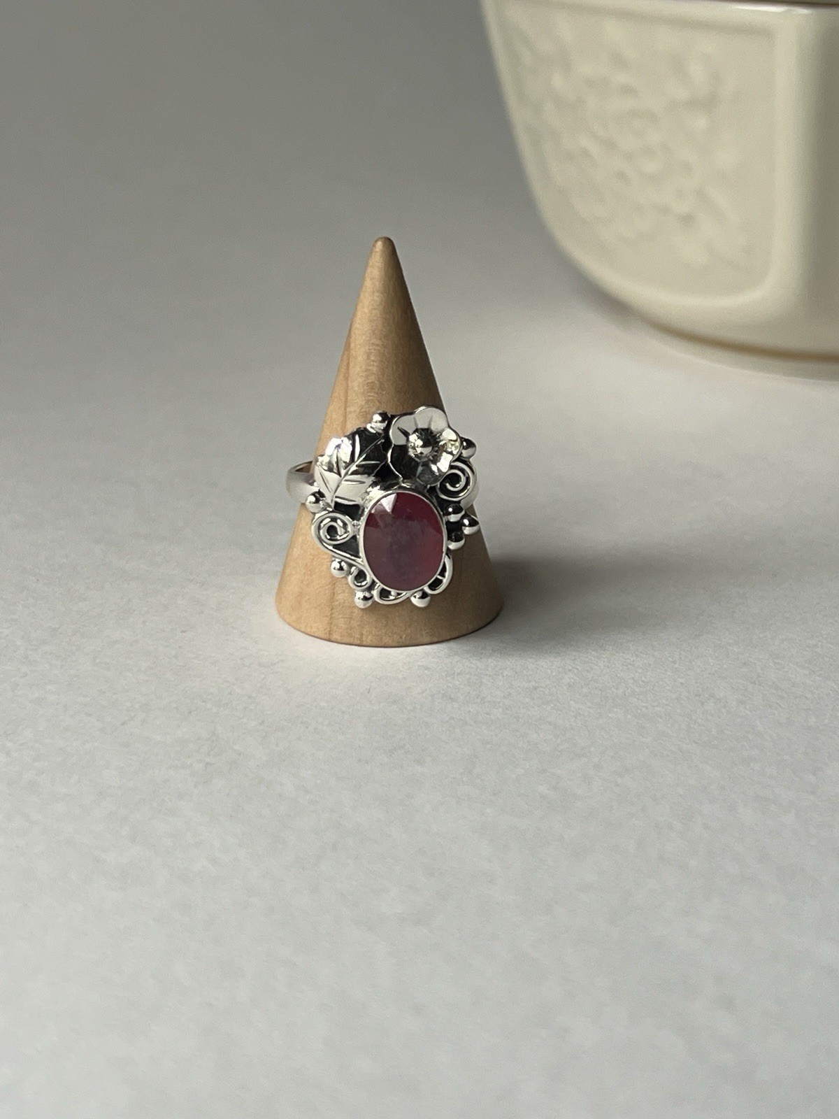 Red Coral Floral Ring 925 Sterling Silver, Adjustable Size
